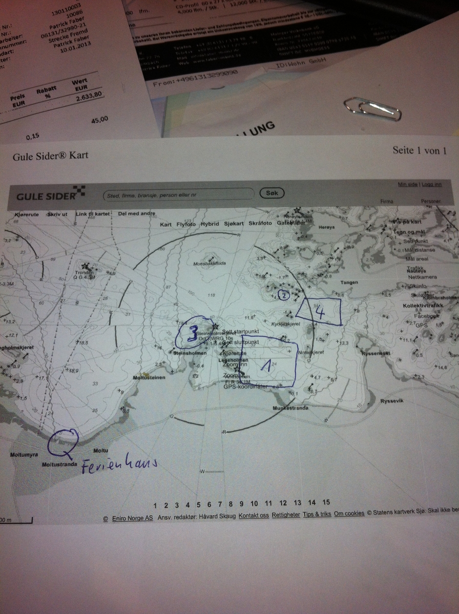 Damit die Beschreibung besser passt, könnt ihr zur Hilfe http://kart.gulesider.no/ nutzen. Da kann man auch GPS Daten ablesen.
