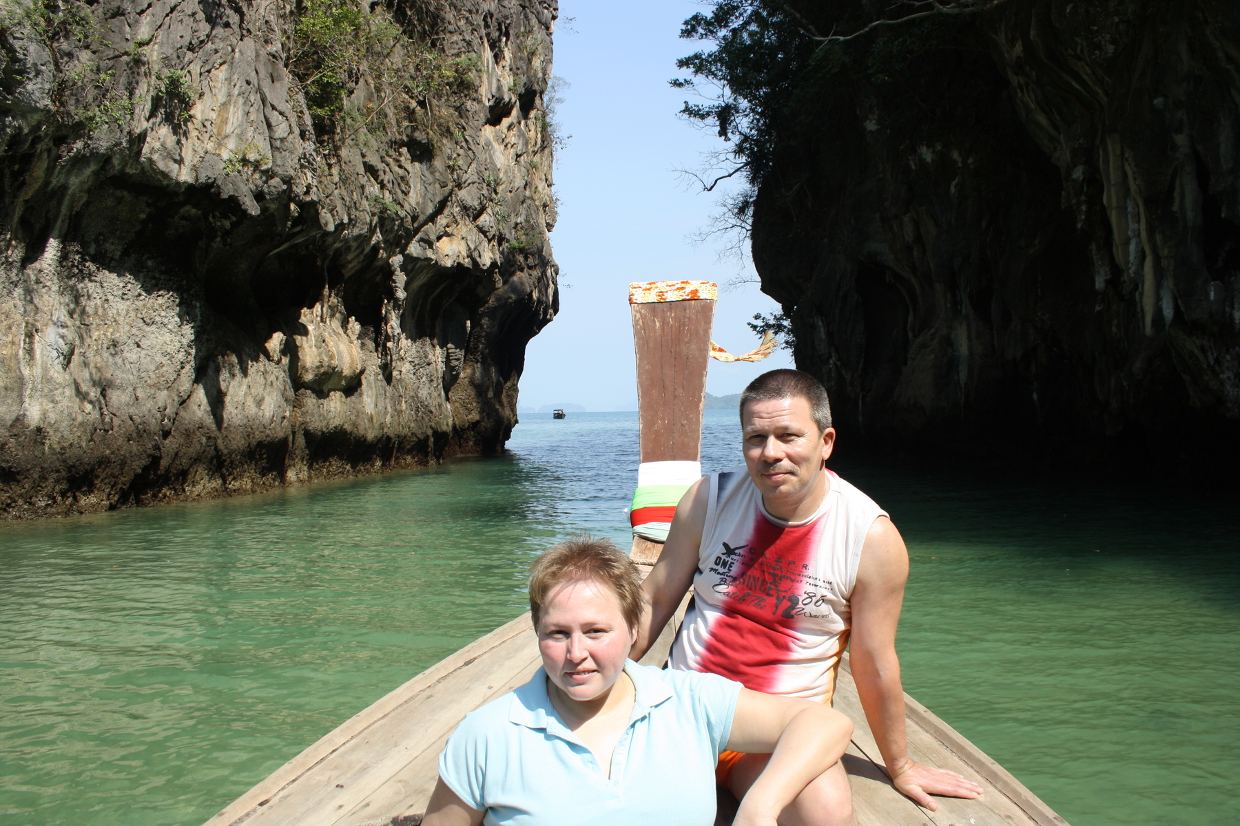 Heute sind wir mit diesem Longtail-Boot unterwegs gewesen: