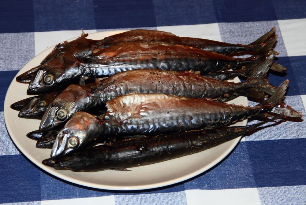 im letzten Jahr haben wir wieder frisch gefangene Makrelen geräuchert. Da wir, außer in Norwegen, nichts mit dem Räuchern am Hute haben, ist es uns wieder passiert, dass die Farbe nicht so war, wie wir es von geräuchertem Fisch beim Händler kennen. Ich hefte mal ein Bild an.