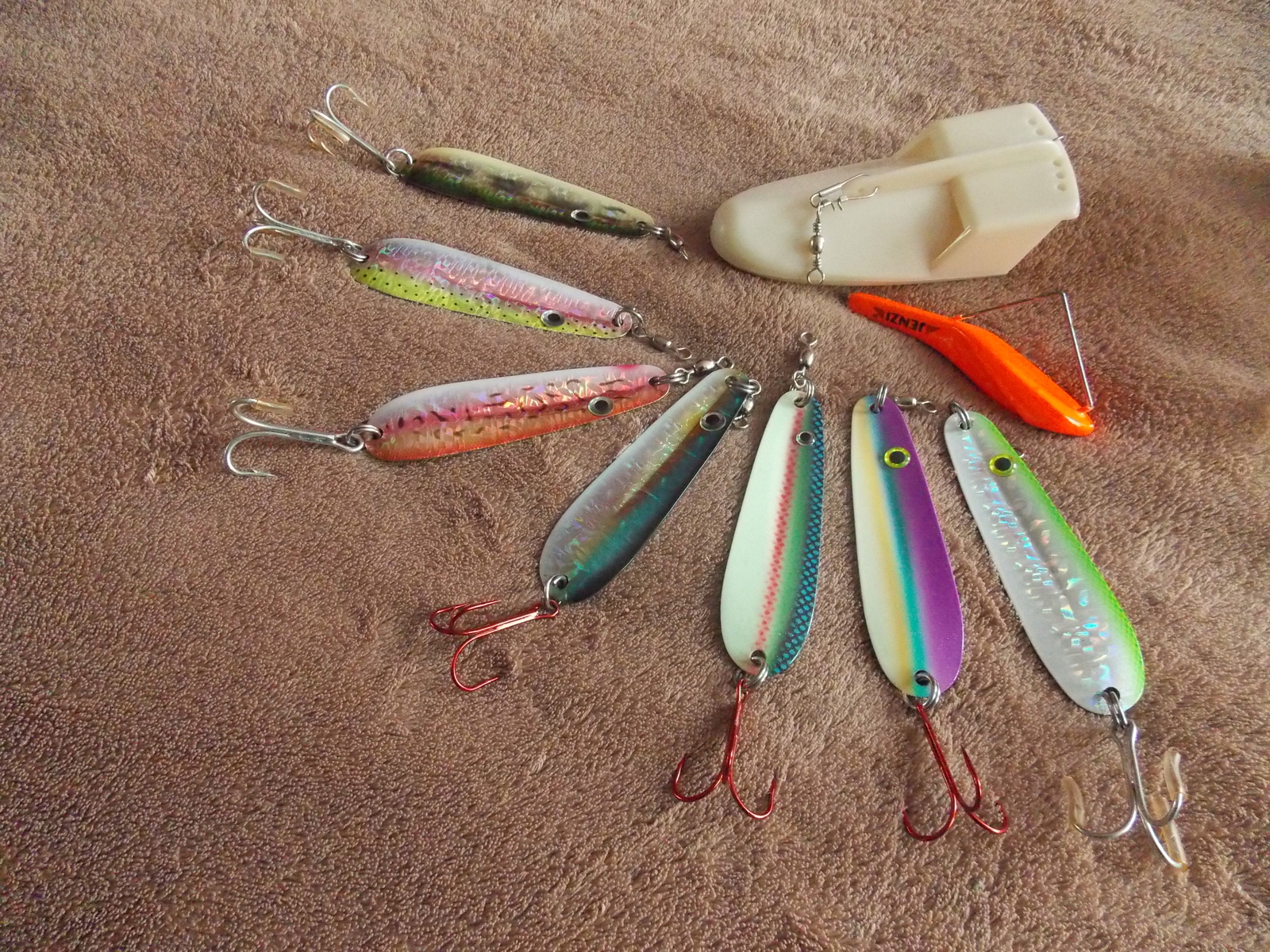einige Modelle die auch durchaus Tiefen von 10 und mehr Metern erreichen.(auf dem Foto ist ein Teil meiner spärlichen Aurüstung,bin eben auch nur Gelegenheits-Schleppangler:biglaugh:).Was die ideale Entfernung zum Boot ist gibt es sicher kein Patentrezept,auch bin ich nicht der Fachmann (ich denke die werden sich noch melden).