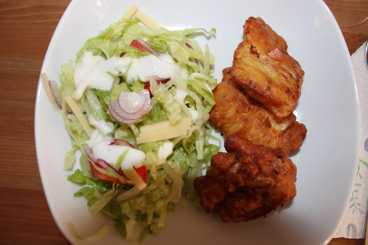 frischfischfilet in senf-eihülle und salat