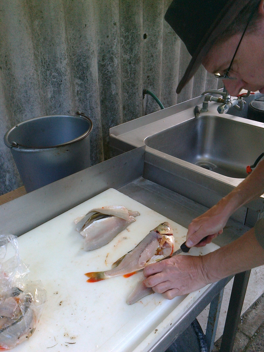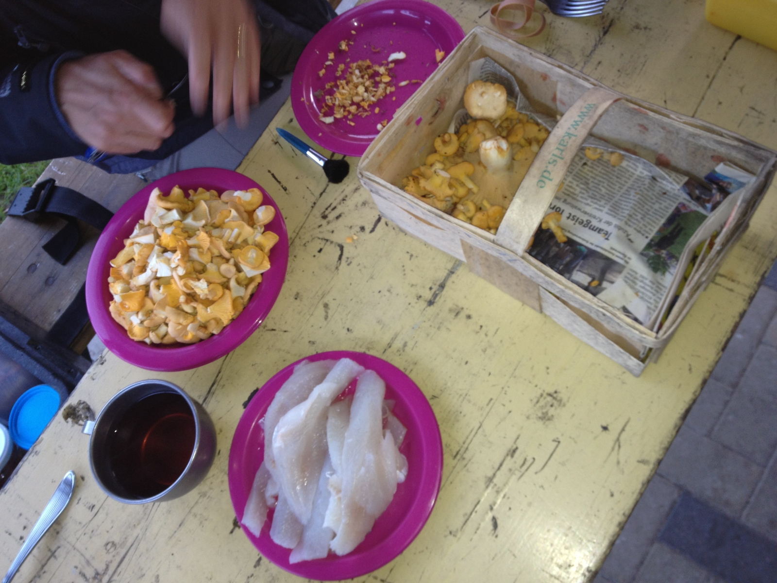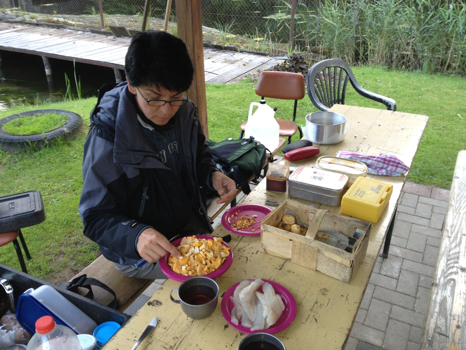 Am Abend gabs dann direkt am See beim Fischer, frisch auf dem mitgeführten Gaskocher zubereitet, leckere Barschfilets an Pfifferlingen.