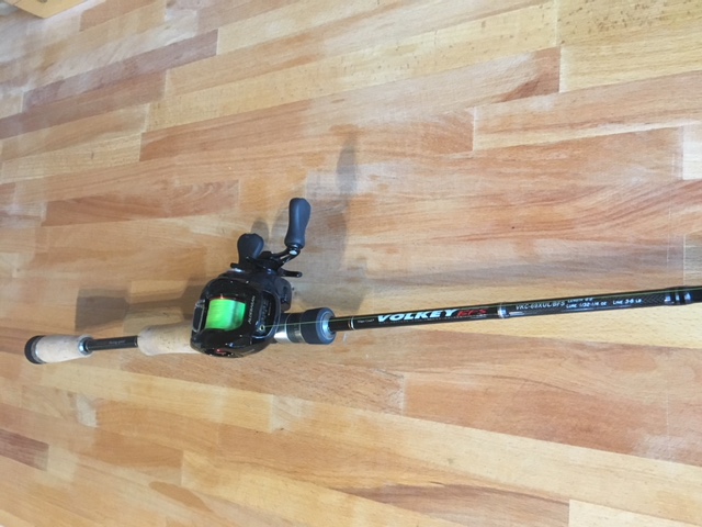 Für die leichte Anglei mit Jigs und Gummi um die 5 Gramm habe ich mir eine Baitcasterkombo geleistet. Dabei wurde eine Volkey BFS mit einer Aldebaran BFS XG gepaart.