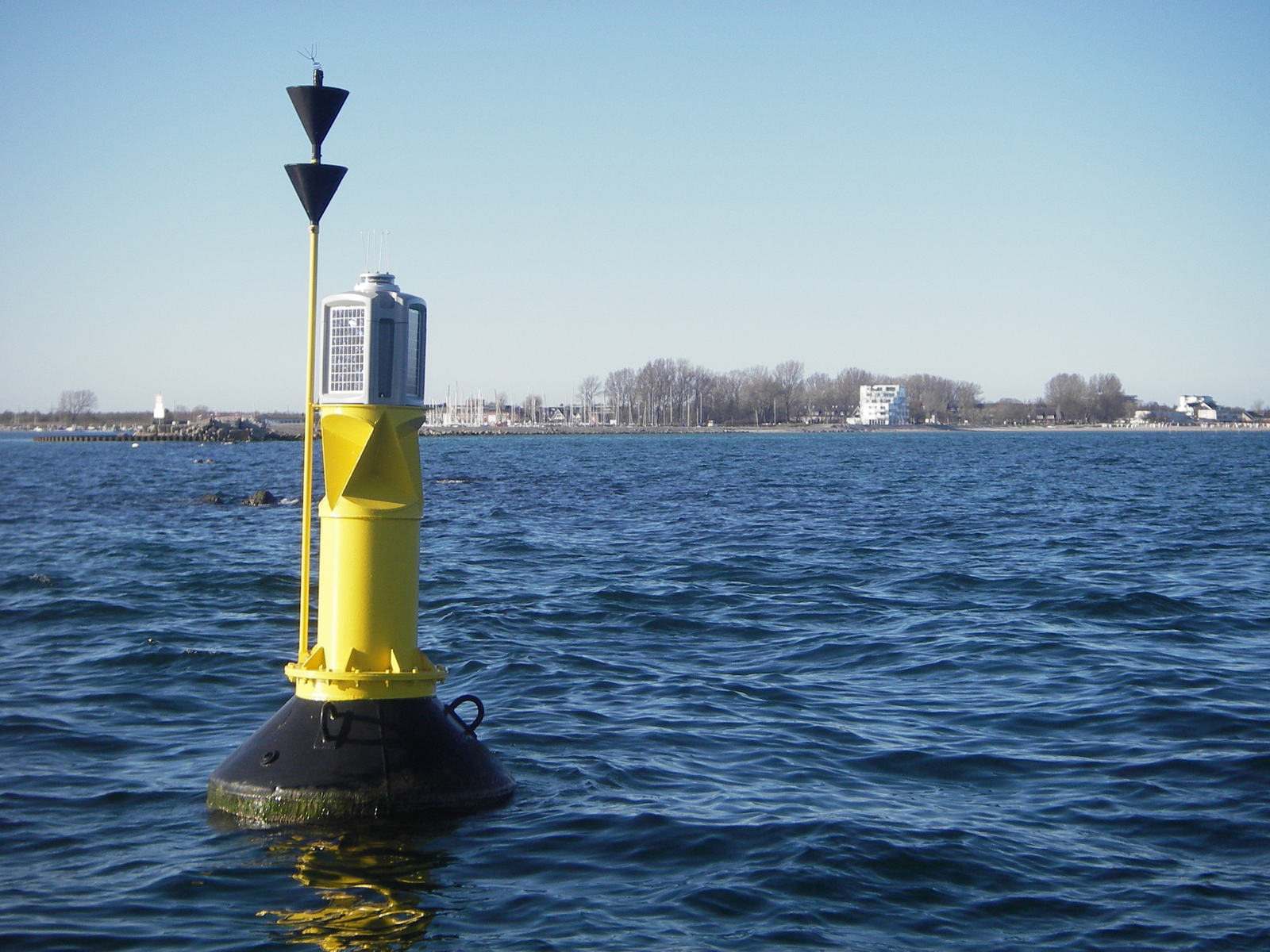 Die rot/schwarze Tonne warnt zur Zeit nur die Gefahr des versunkenen Kutters.