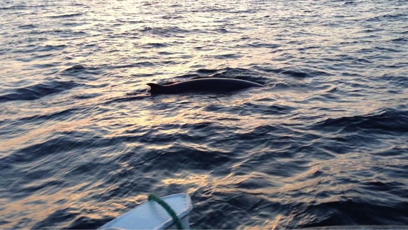 Gerade wieder rein! Fisch kommt langsam zurück nach dem Wind aber Massen sind es nicht! Dass wir aber wenigstens den Meter Fisch gesehen haben kann ich beweisen! ( eigentlich ist es ja kein Fisch aber lang!) War nur zwei Meter vom Boot weg und ein richtig tolles Erlebnis !