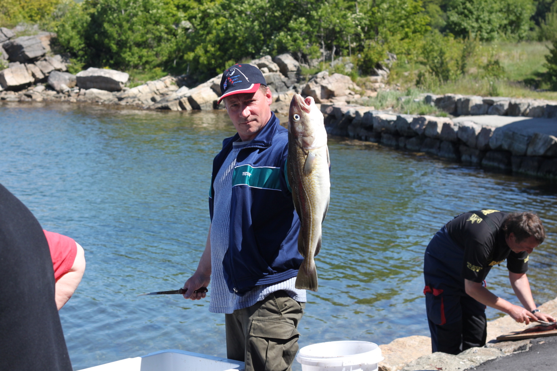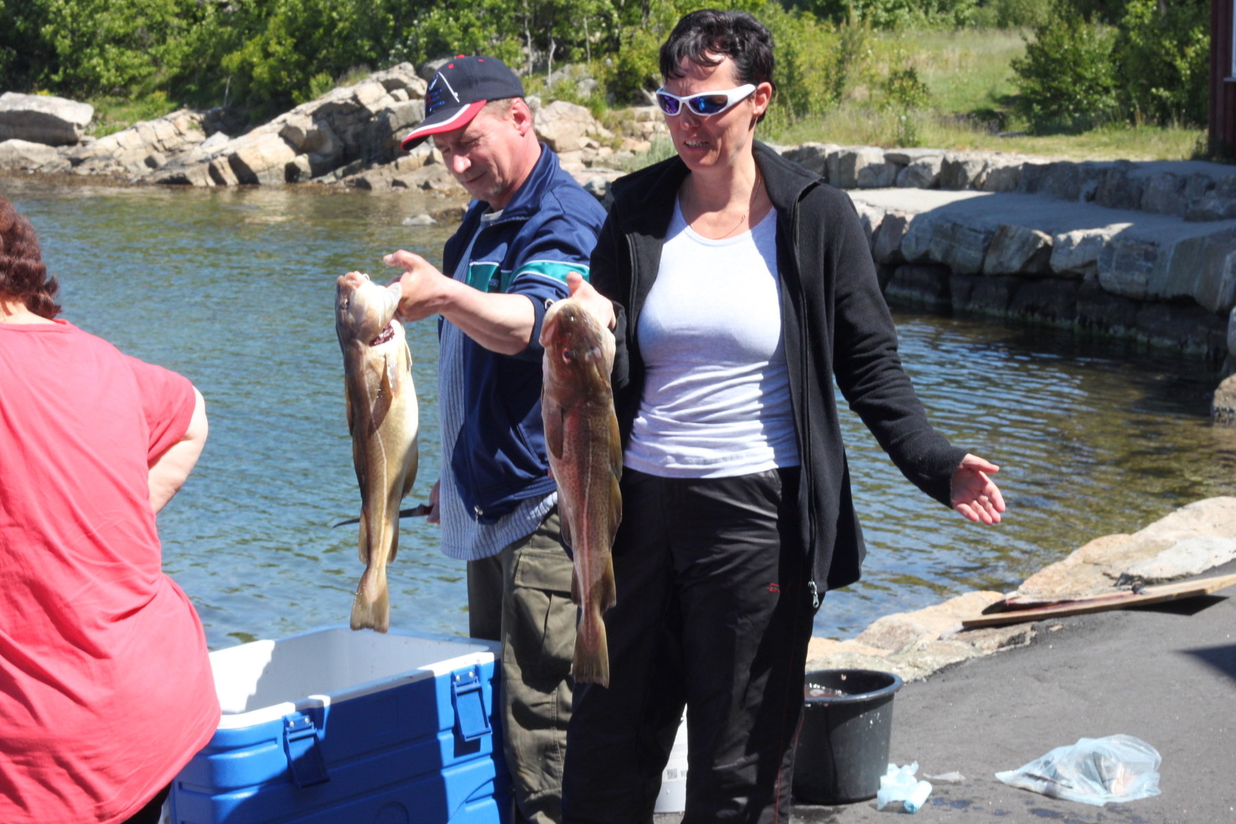 Der Grönsfjord ist zweifellos ein sehr schöner Fjord aber bei aller landschaftlicher Schönheit die er bietet zu den Top Angelgewässern zählt er nicht das war uns auch schon im Vorfeld klar. Dennoch stirbt die Hoffnung bekantlich zuletzt u. so hofften wir einfach mal. Das gute 21 Fußboot mi 60 PS ermöglichte uns ein zügiges anfahren der verschiedensten Stellen aber trotz dieses Pluspunktes den Fisch zu finden wurde Schwerstarbeit. Zumeist traffen wir auf haufenweise untermaßige Köhler von Makrelen keine Spur u. nur vereinzelt ein paar maßige Dorsche. In den Schären von Korshamn fast das selbe u. auf den vielen Angelbooten hier in den Schären fast nur unzufriedene Gesichter u. Schulterzucken. Oh oh dachten wir der Fisch wird wohl weit draußen sein. Dank Suse saßen wir ein Tag später in Eckhard sein Boot u. der fuhr dann mit uns richtig raus u. fand den Fisch ebend weit draußen. Neben zahlreichen Köhlern stiegen nun auch recht gute Dorsche ins Boot u. 4 davon deutlich über 3kg. Ein staatlicher Leng u.sogar ein Rotbarsch aus 50m tiefe wollten dann auch noch mit. Da sah die Welt schon viel besser aus u. hier geht nochmals ein großer Dank an Suse u. Eckhard.