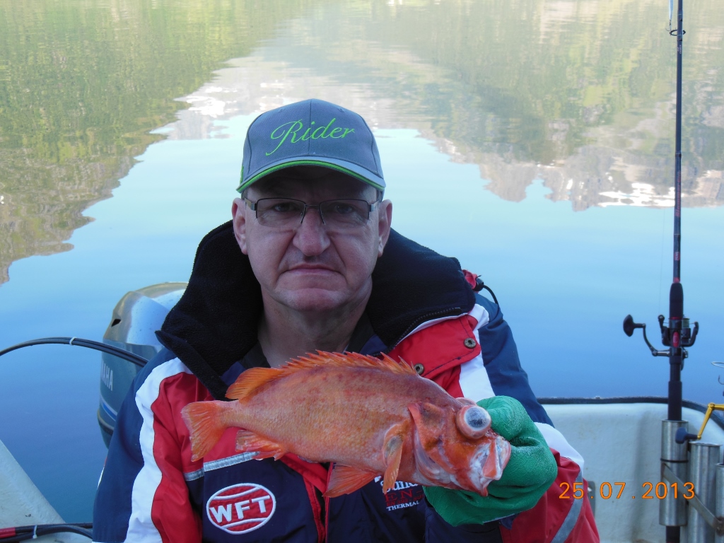 Wir konnten einige Köhler, Pollacks und Rotbärschchen aus dem Fjord holen. Beim Angeln haben wir auf einmal lautes Blasen gehört und den Fjord in diese Richtung abgesucht. Eine große Schule Wale in der Bucht auf der anderen Seite forderte uns auf, das Angeln sofort einzustellen. Beim näher fahren konnten wir ca. 20 Grindwale ausmachen. Alles Kühe mit ihren Kälbern. Oh man, was für ein Erlebnis!!! Einige der Kälber sind sogar aus dem Wasser gekommen und haben sich auf die Seite geschmissen.