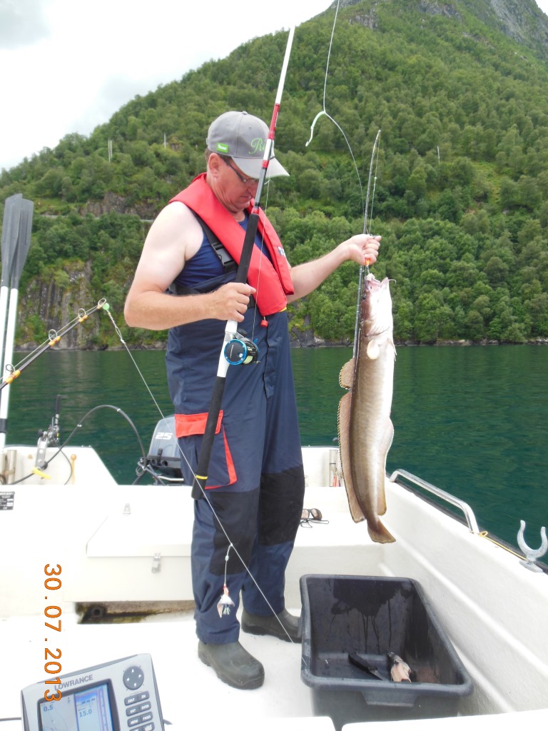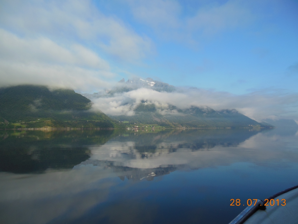 Meine Erwartungen waren nicht sehr hochgeschraubt. Ein neues Revier bringt auch immer einen schwierigen Start mit sich und wir müssen erst einmal neue Erfahrungen sammeln. Im Hjørundfjord gibt es kaum markante Unterwasserberge, eben ein klassischer Rinnenfjord. Von den anderen Urlaubern wussten wir schon – keine Makrelen im Fjord. Doch es sollte anders kommen. Wir haben uns den einzigen 45 Meter Berg gesucht und sind ihn angefahren.