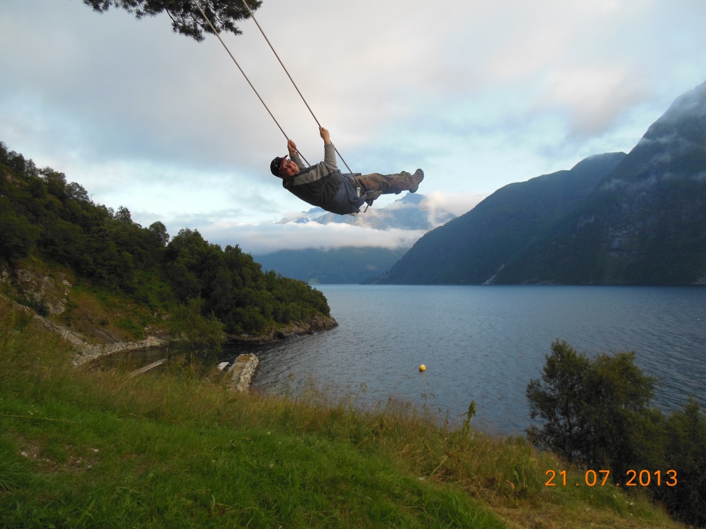 Das Wolkenspiel in den Bergen ist so faszinierend, da möchte Gaby am liebsten über den Fjord fliegen.