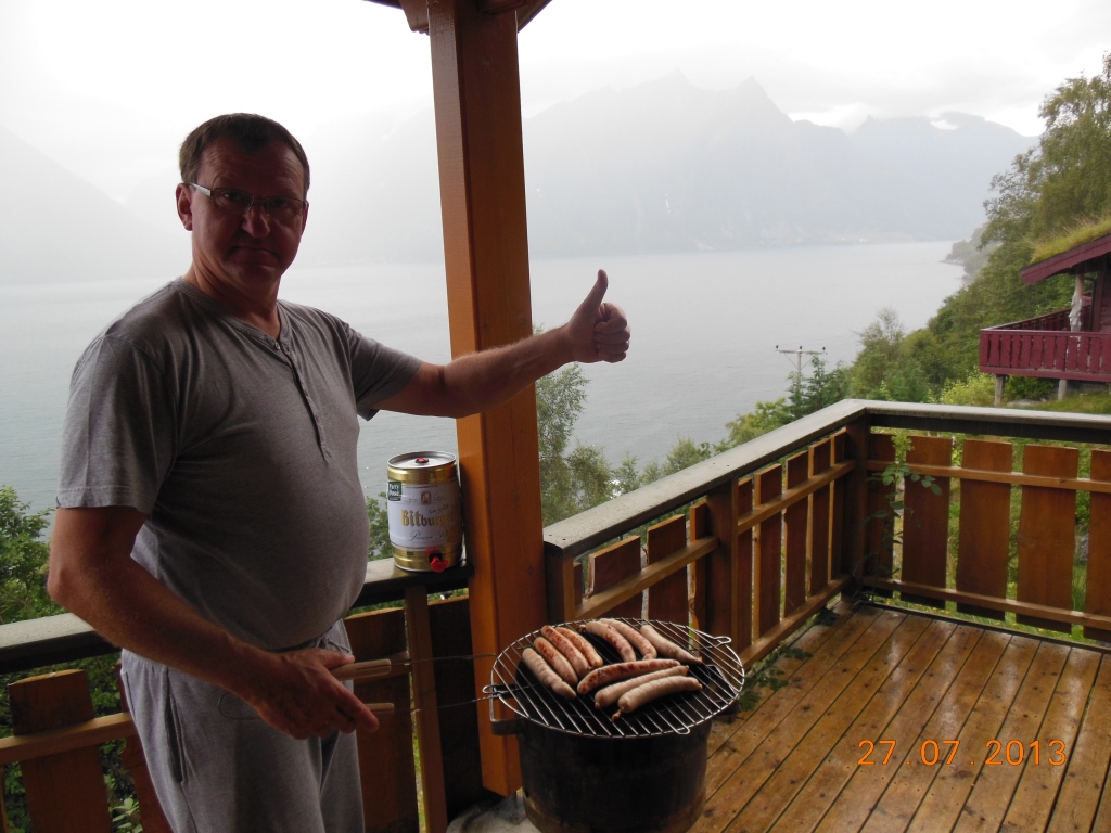 Dann wurde noch der Grill angeschmissen, denn schließlich hatten wir die originalen Thüringer Roster „sponsored by Zuggerschollen“ nach Norwegen eingeführt.