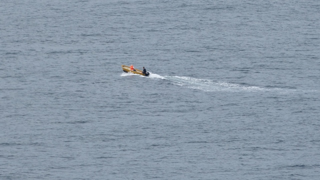 Dann schwappte eine ordentlich Welle ins Boot und wir beschlossen den Rückzug, bevor es schlimmer wird und wir zu sehr quer zur Welle fahren müssen.
