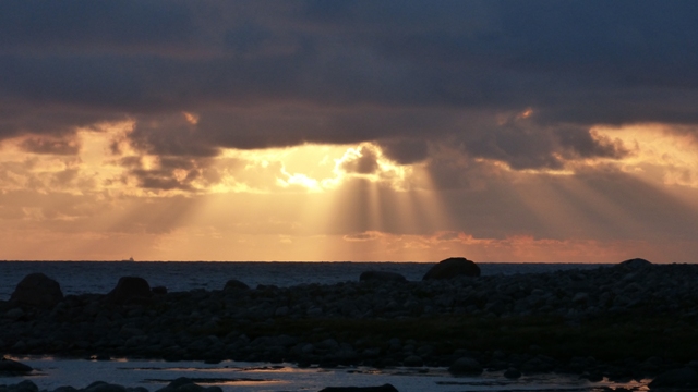 Eben waren Simon ich ich nochmal auf der Hafenmole und in den Steinfeldern um Treibgut als Deko für zu Hause zu sammeln.