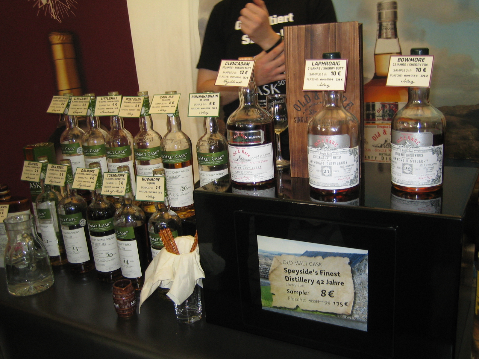 Alles was das "Whiskyliebhaberherz" begehrt war am Start. Großartige alte Whiskys, offene Raritäten, Neuerscheinungen, Zubehör und jede Menge Information. Letztere natürlich aus erster Hand, von Whiskyexperten aus Deutschland, aus Holland und vor allem natürlich aus Schottland. Und die Schotten waren auch in diesem Jahr wieder zahlreich vertreten, ungemein nett und sie wurden auch nicht müde die - wahrscheinlich immer gleichen ;) - Fragen des interessierten Publikums zu beantworten. Mein persönliches Highlight dabei war ein Smalltalk mit dem ehemaligen Distilleriemanager von Talisker, Charlie Smith, am Stand von Diageo (Classic Malts).