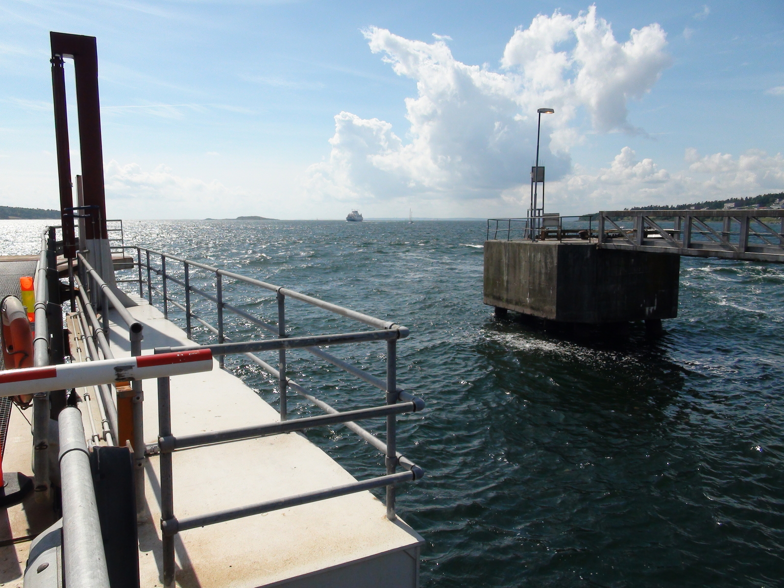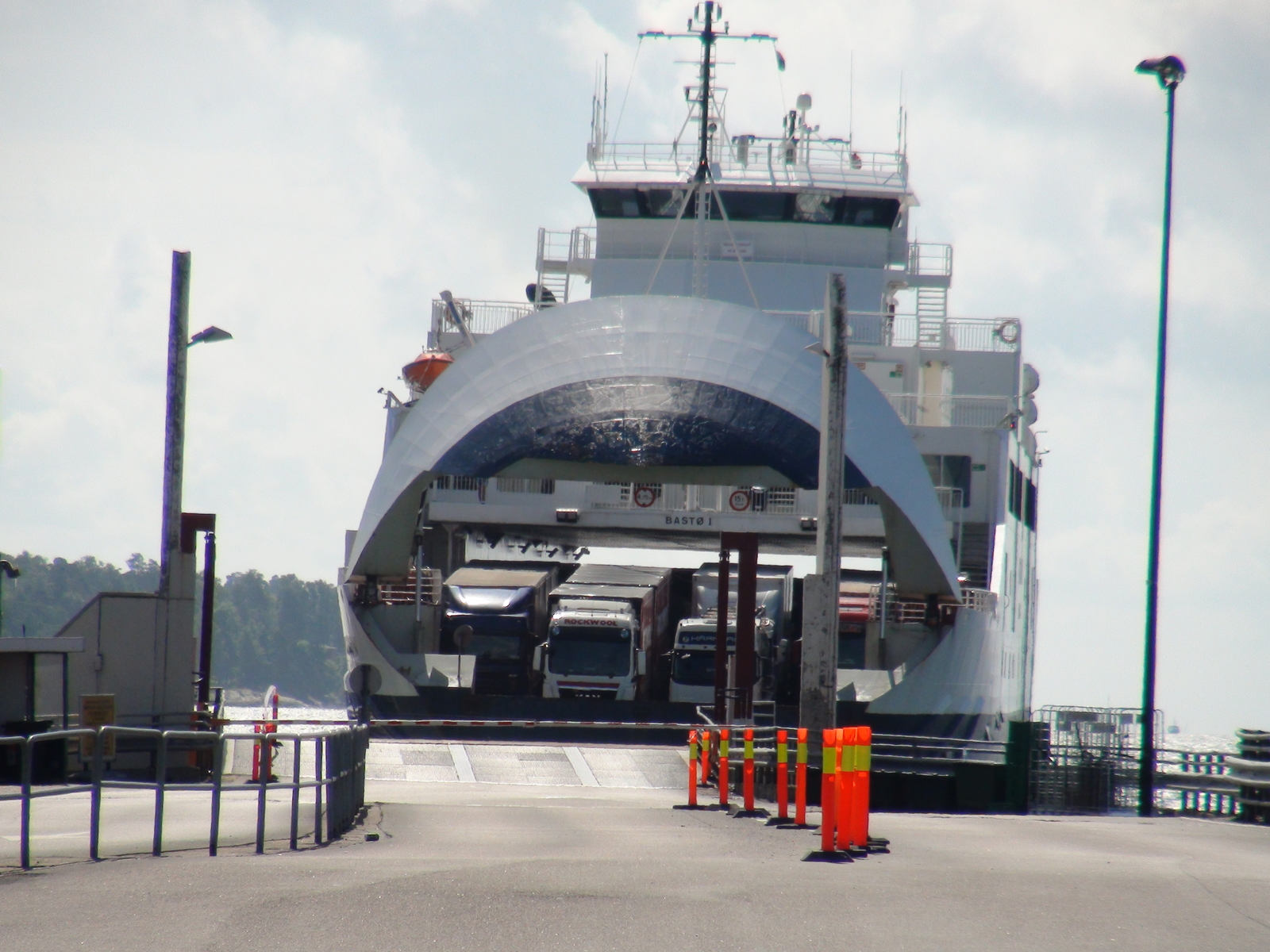 Immer weiter der E6 entlang, kamen wir auch an Moss vorbei. Dort hielten wir für einen Fotostopp. Es war ganz schön windig dort, aber die Sonne strahlte. Im Hafen stand die Fähre bereit, die über den Oslofjord nach Horten fuhr.