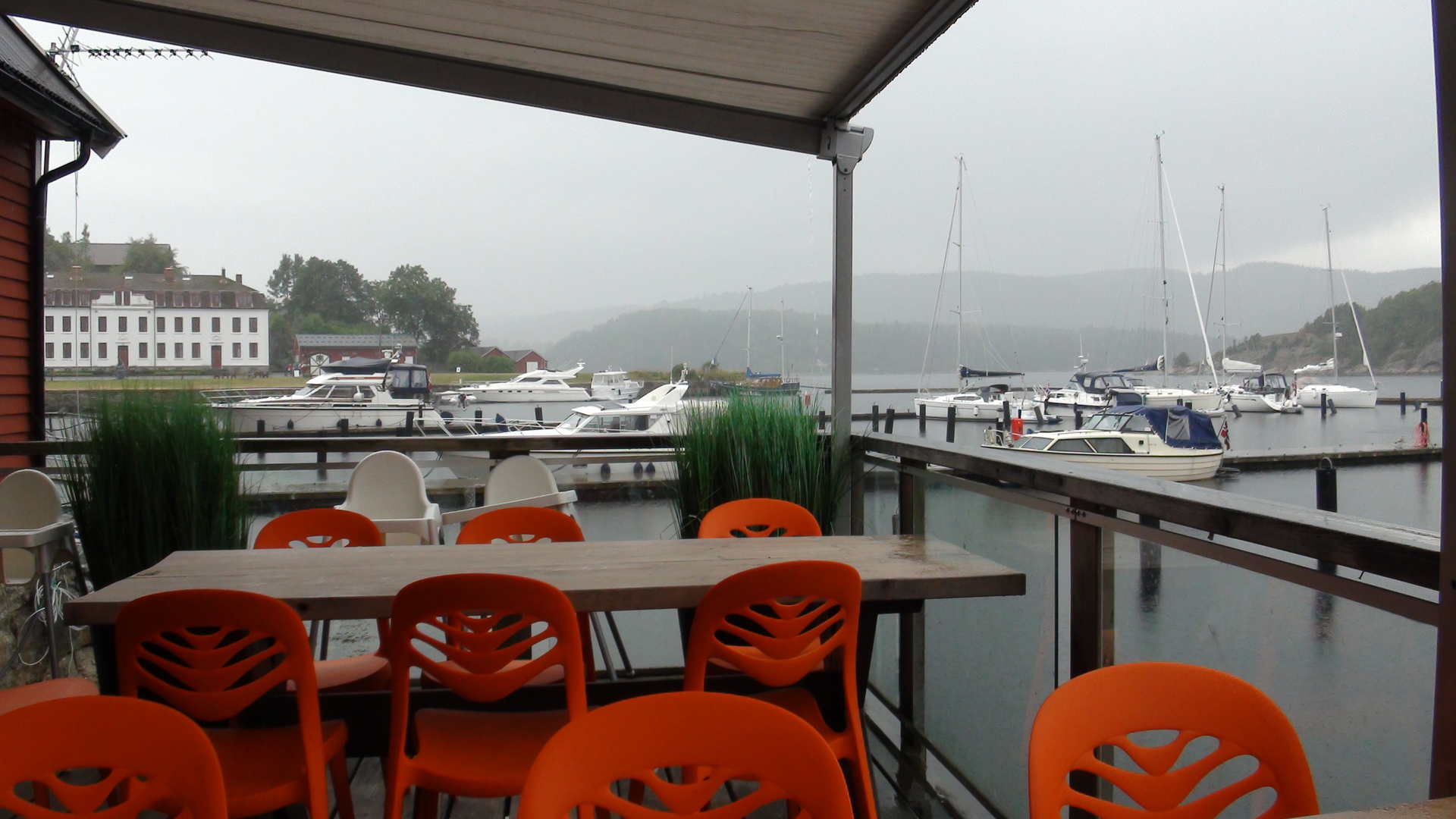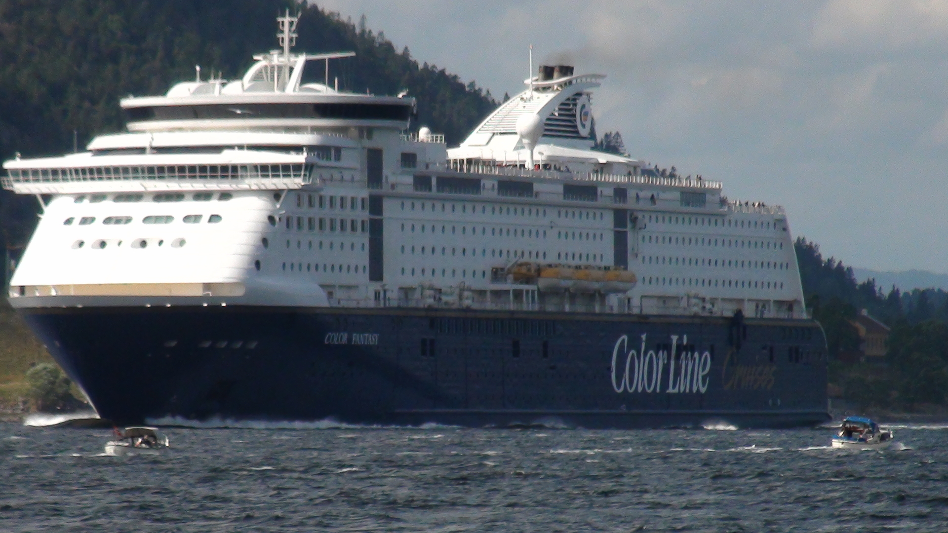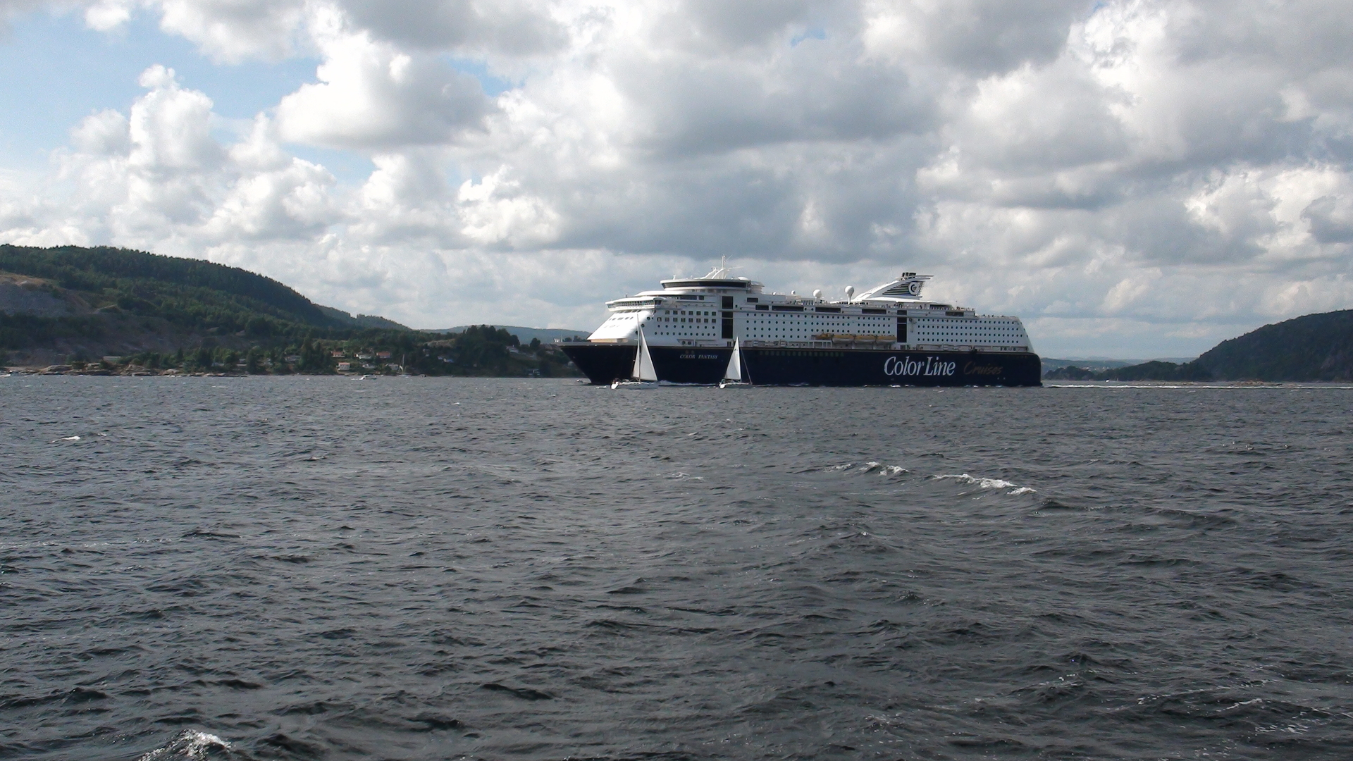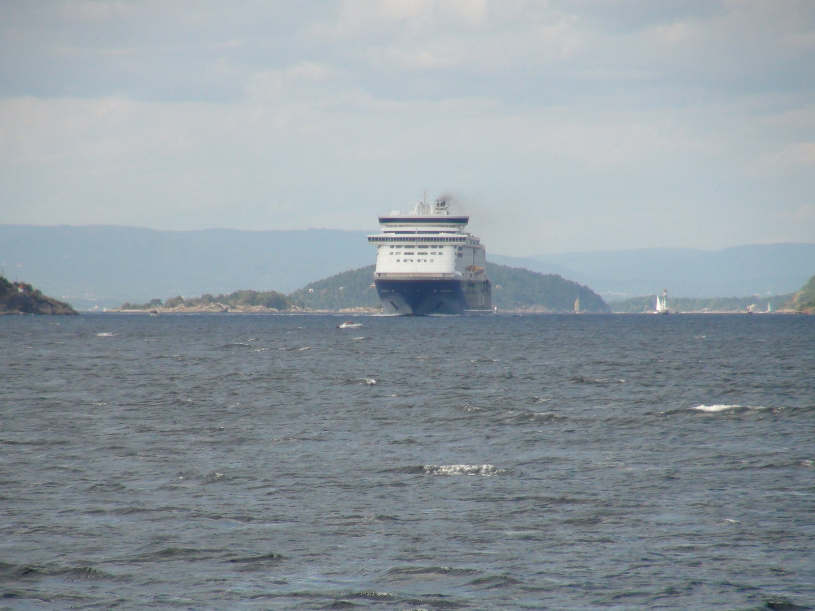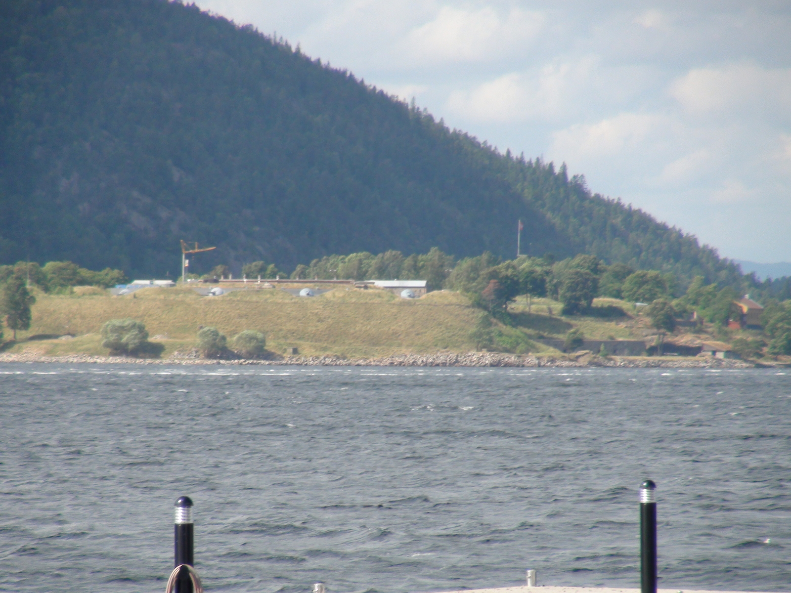 Unser nächster Halt war Drøbak. Wir schauten uns den neuen Gästehafen an. Man hatte einen direkten Blick auf die Festung Oscarsborg, die ja mitten im Oslofjord liegt. Von dort kam gerade die kleine Fähre rübergefahren und wir passten auf, wo genau sie in Drøbak anlegt, denn auf diese Festung wollten wir auch diesmal. Auf dem Oslofjord waren auch einige Segler bei diesem Wind unterwegs. Und dann sahen wir, dass die Color Fantasy sich näherte. Sie schob sich an der Festung und an Drøbak vorbei und sagte: "Auf Wiedersehen" zu uns und fuhr in Richtung Kiel. Was für ein Koloss!!