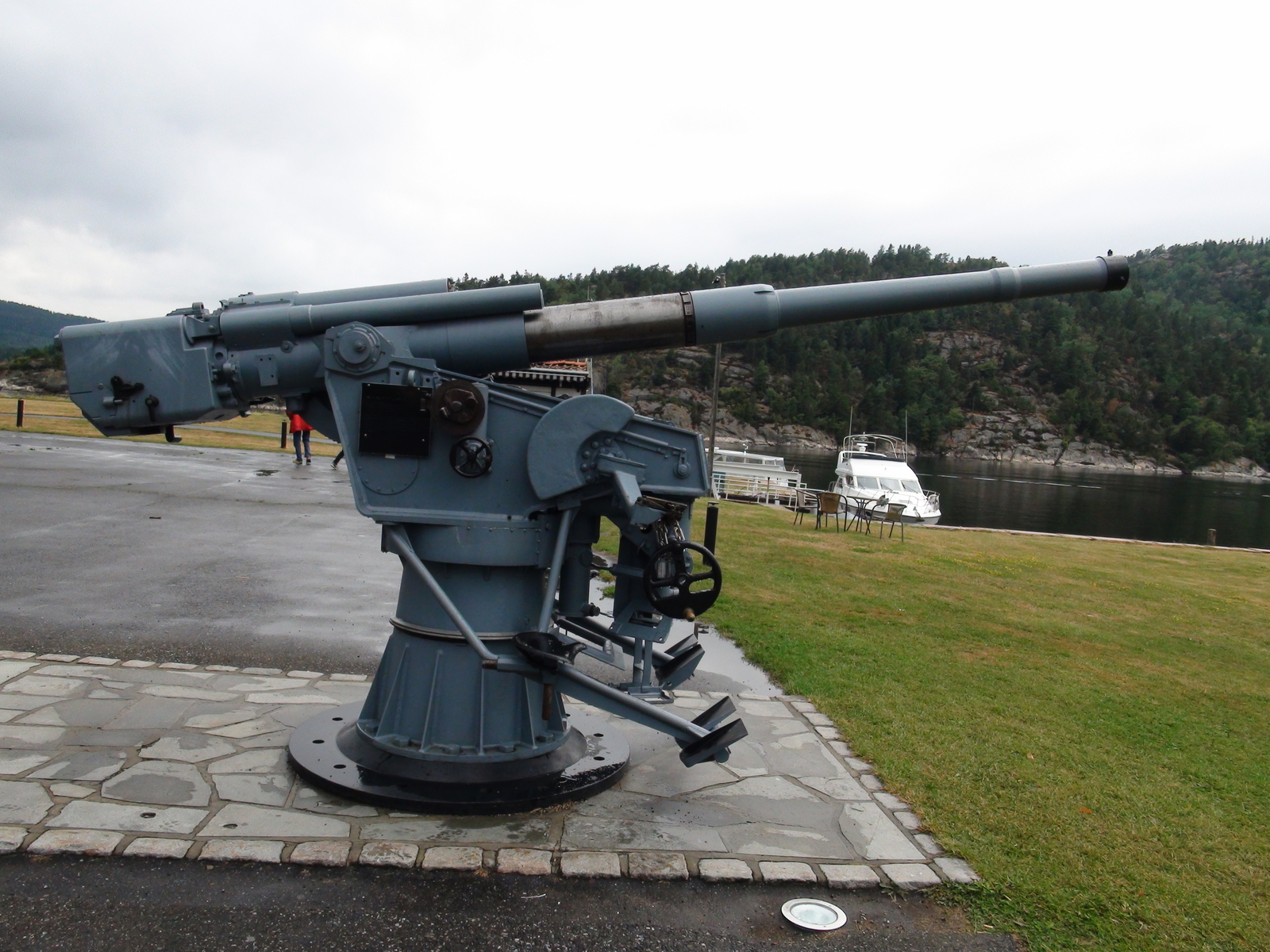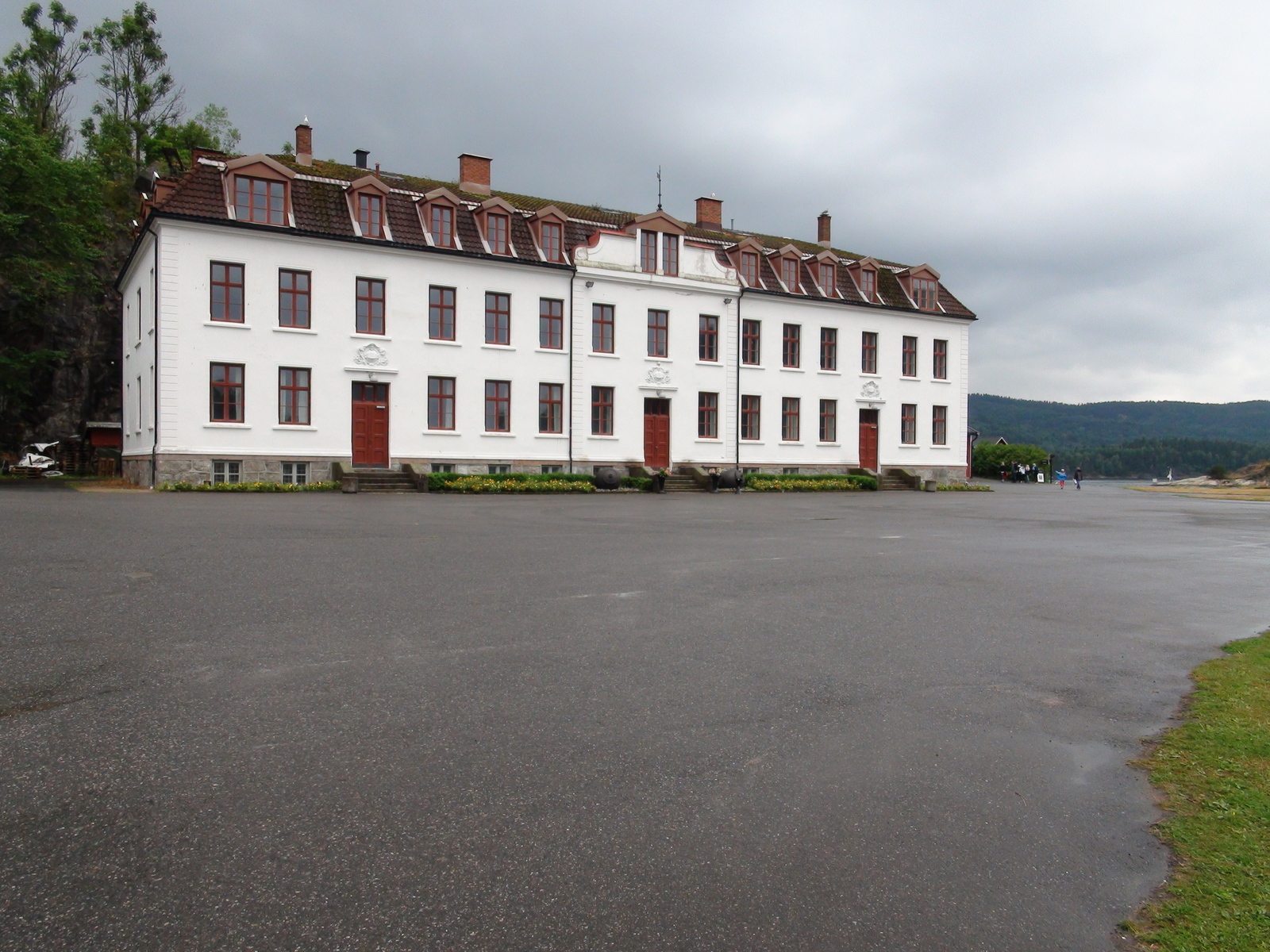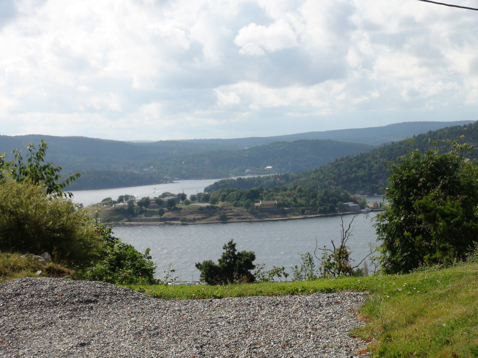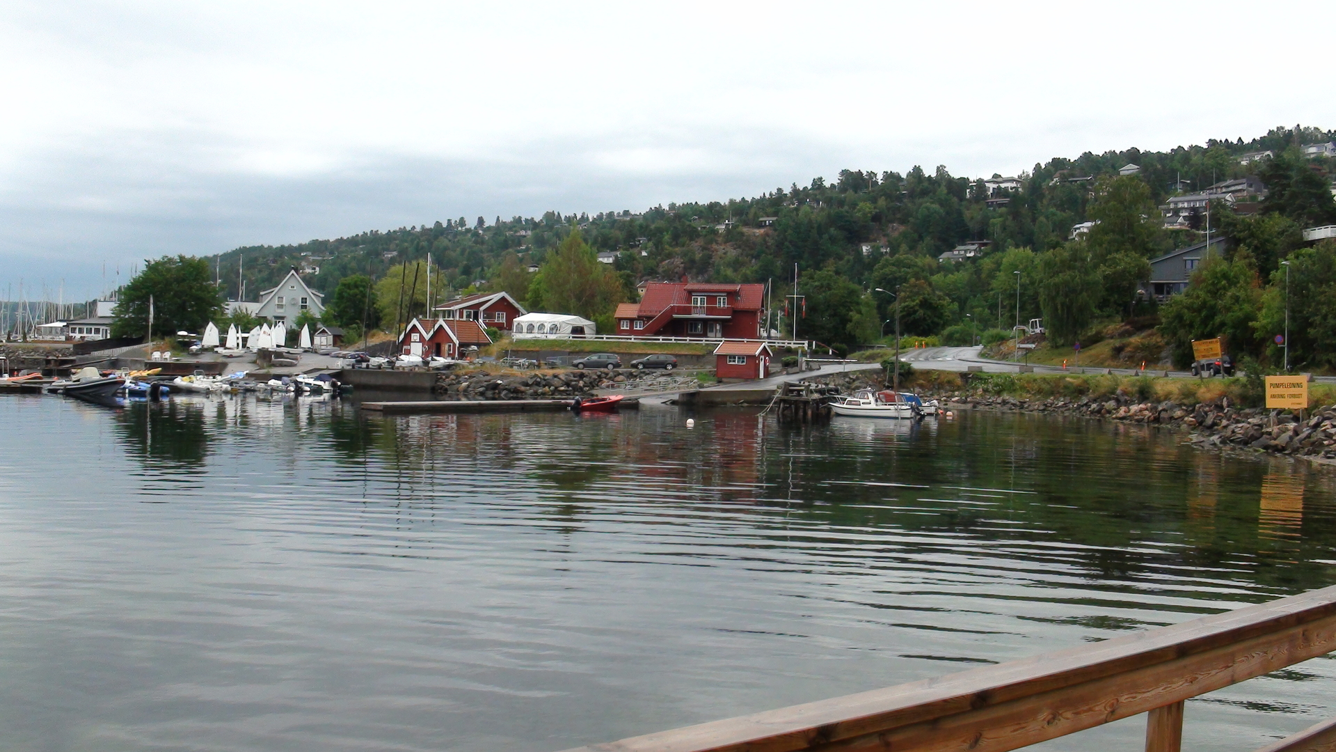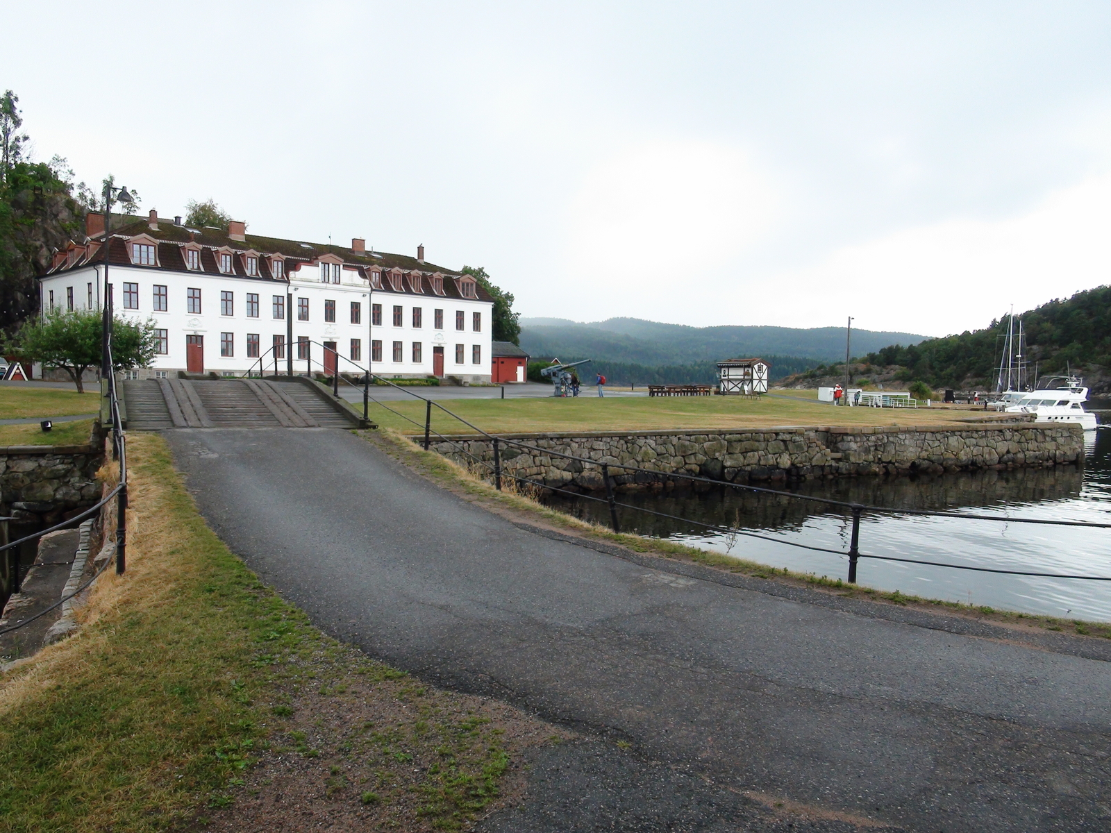 Wir sind dann in Richtung Oslo aufgebrochen. Unterwegs fing es an zu regnen und so waren wir uns einig, dass wir uns heute gleich die Festung Oscarsborg bei Drøbak ansehen. Auch kurz hinter Oslo regnete es in Strömen, es ließ aber bald nach. In Drøbak suchten wir uns einen Parkplatz und schossen noch ein paar Fotos. Dann machten wir uns auf den Weg zum Fähranleger. Die Fähre kam gerade rübergefahren. Wir bezahlten für die Hin- und Rücktour 100 NOK pro Person. Auf der Festung ist dann alles frei zugänglich ohne weiteren Eintritt zahlen zu müssen.