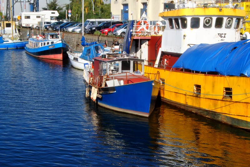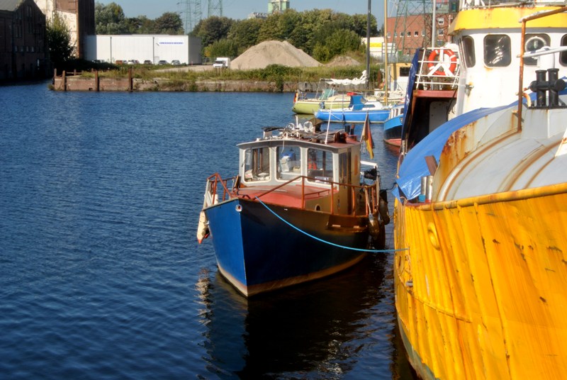 Momentan wird im Hafen von Hamburg - Harburg ein Angelkutter auf Vordermann gebracht. Es fehlt noch die Decksbeschichtung (rutschfest) und einiges an Außenfarbe.
