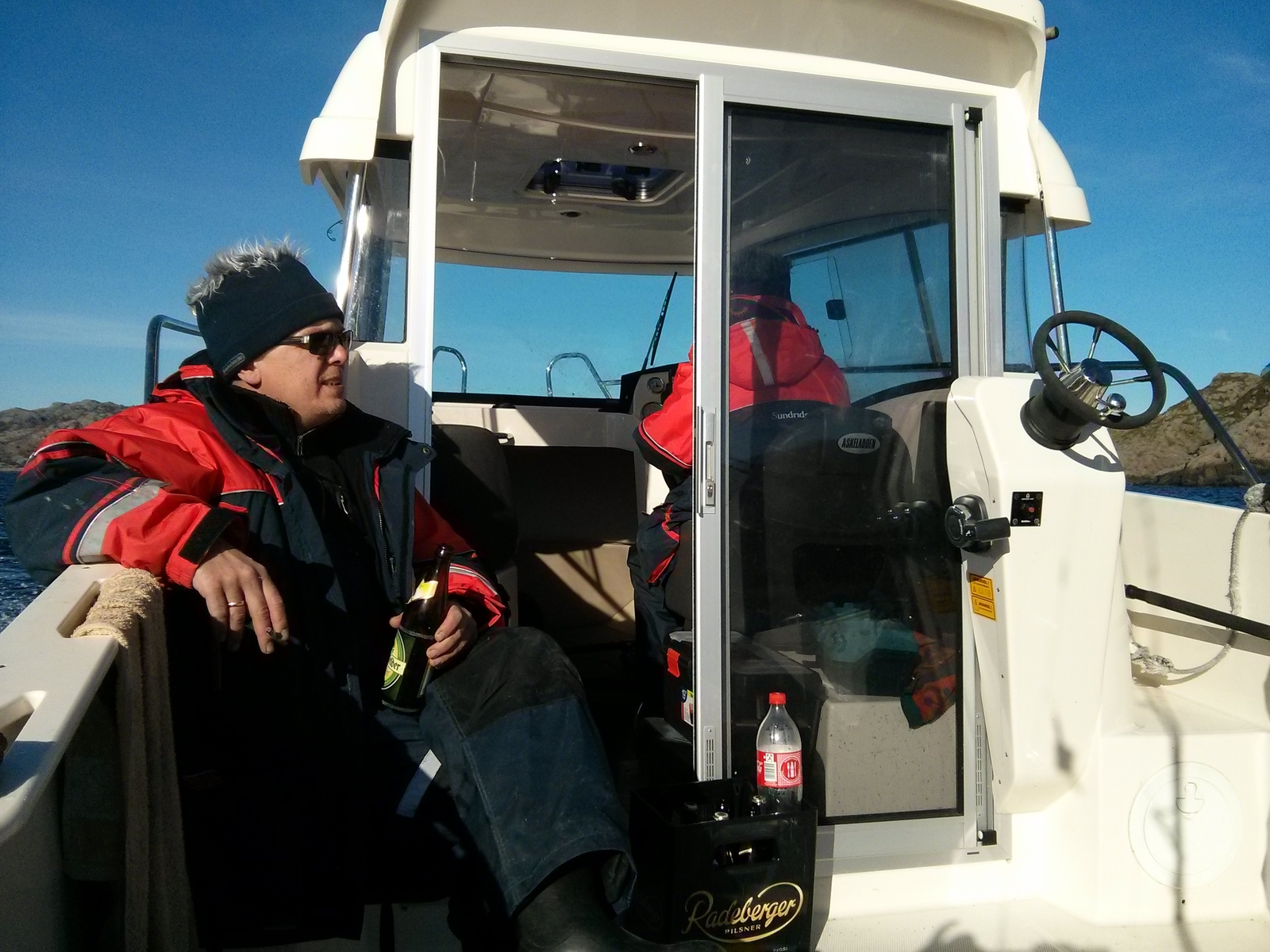 Der Wind war um die 20 - 24 km/h und Wellen um 1 Meter. Die Überfahrt am Eidsfjorden war schon nicht ohne und der Wind ließ uns leider in Richtung Land driften während das Wasser auswärts strömte. Daher hatten wir eigentlich keine Chance was zu fangen. Der Fisch stand gegen die Strömung und wir näherten uns mit unseren Ködern von hinten. Dadurch bekamen uns die Fische nicht mit.