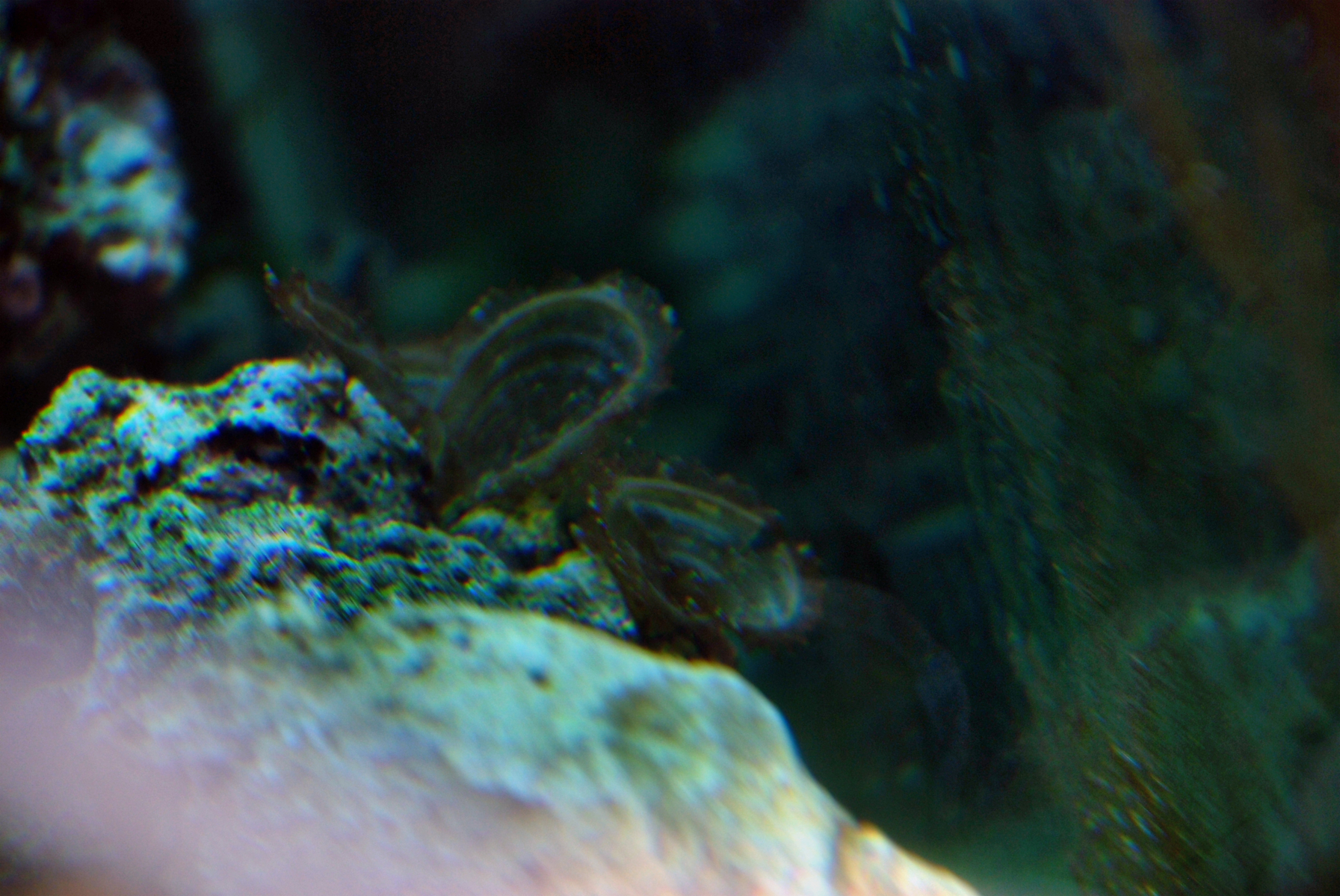 Fast vergessen,auf einem Bild sind so halbrundr bis Runde Objekte zu sehen;daß sind die Kronen von Röhrenwürmer;die schon im Lebendgestein vorhanden waren.