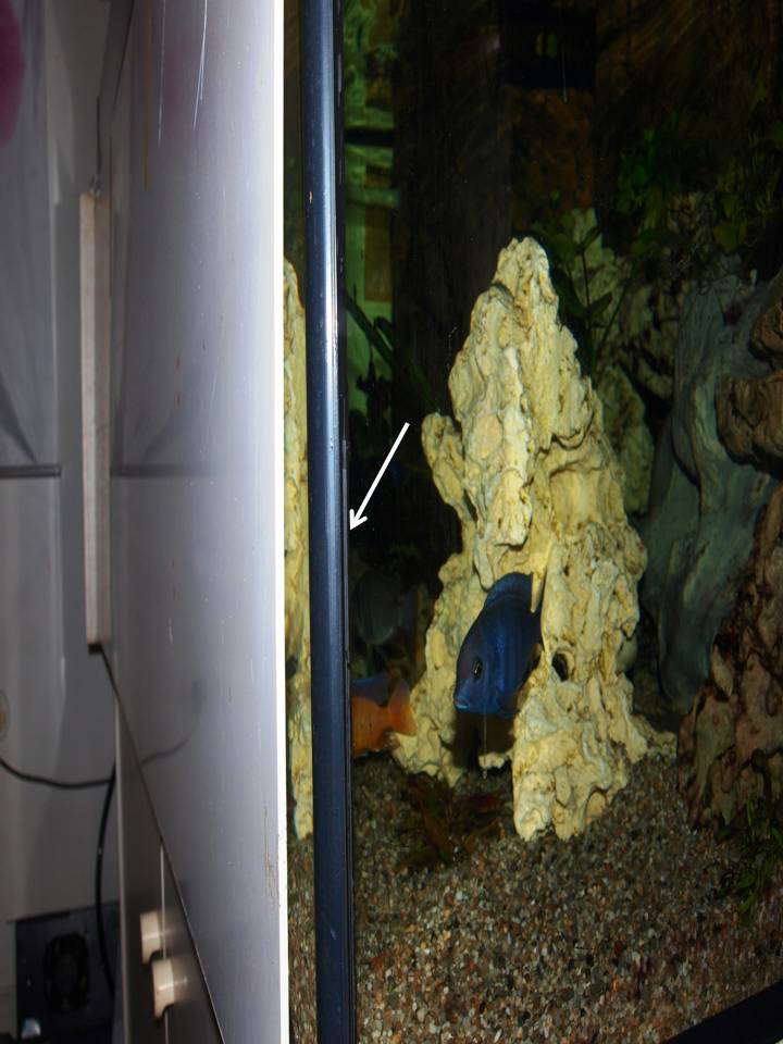 Irgendwie ist dieses Jahr der Wurm bei mir drin,erst die Nachricht letzte Tour mit Sven und Mäuschen nach Norge, dann Schmerz-Probleme mit meiner Scheiß Bauchnarbe,seit Anfang 2017 werde ich die verdammten Blaualgen-Bakterien im Becken( Seite 1 hier) egal was ich probiert habe nicht los und nun werde ich es abschaffen müssen.Die Wulstverklebung an der rechten Seite vorne gibt langsam auf nach 22 Jahren(auf dem Foto direkt an der Spitze des Pfeiles sieht man das)unter das Silikon wandert dort langsam voranschreitend Wasser.Bevor es zu spät ist und ich 600L Wasser in der Bude habe kommt es in 2 Wochen zum Sperrmüll.Da der Unterschrank noch Top ist habe ich mal nachgefragt was das Becken plus Abdeckung ,Beleuchtung und eingeklebtem 40l Biofilter kosten würde(vor 22 Jahren habe ich dafür 760 Mark bezahlt) Heutiger Preis 1800Euro*eek* Das ist mir zu heftig ,also werde ich mich verkleinern auch wenn ich meine großen Barsche weggeben muß,es wird wohl ein Juwel Rio 350l werden ,kostet komplett mit Unterschrank Bio Innenfilter und Doppelt LED Beleuchtung 649 Euro.Rein sollen wieder Barsche , Herings Chichliden und kleine Schneckenbarsche. Ich werde berichten.Mal schauen wie ich das alte Becken aus der Bude kriege, ich muss es wohl in den Wulstverklebungen auseinander trennen damit es2 Arbeitskollegen weg bringen können, ich darf das nicht heben.... wegen dem Bauch .