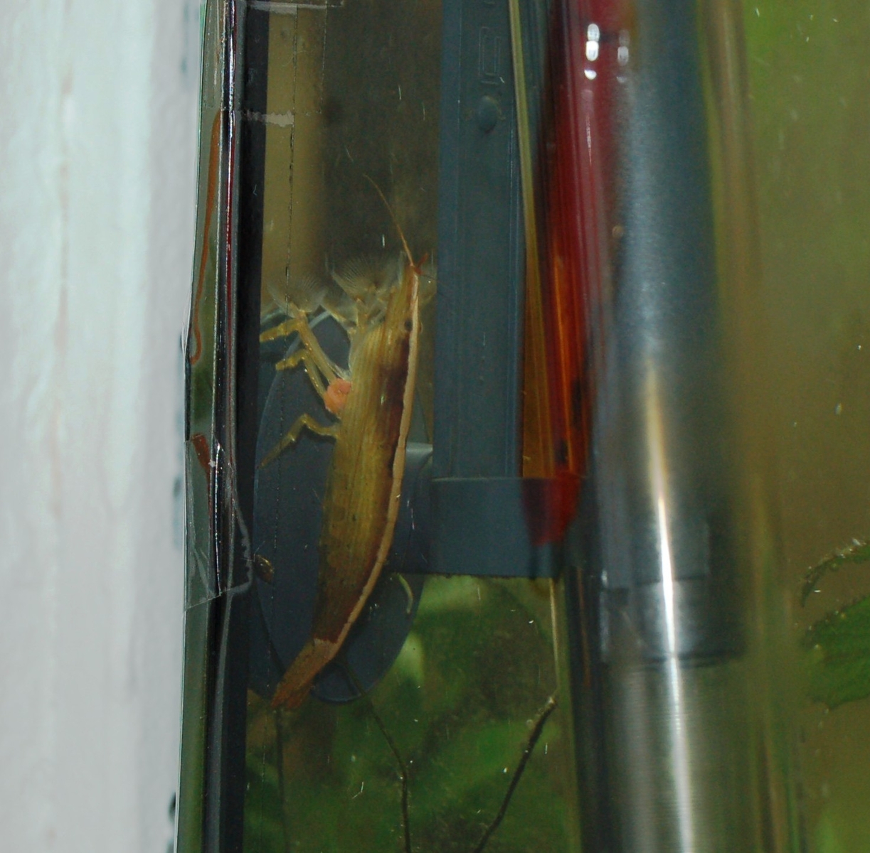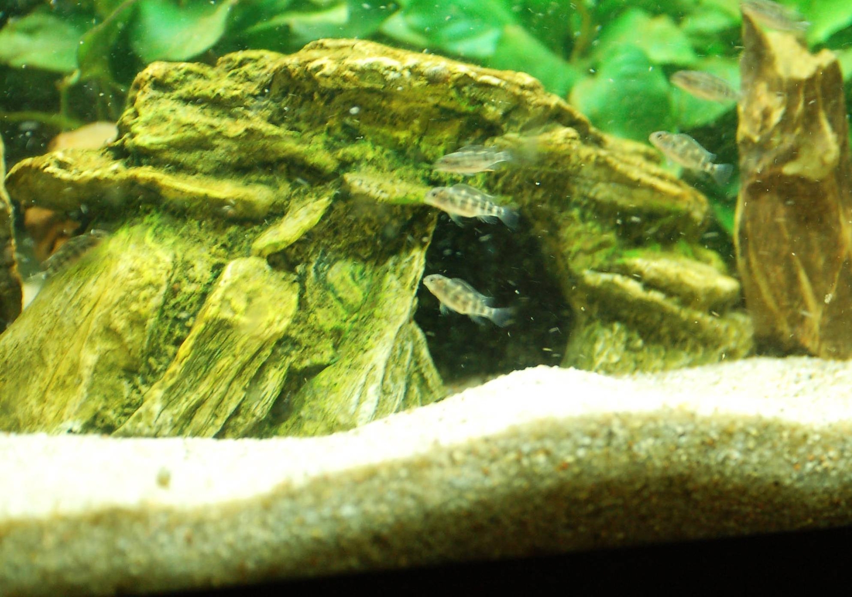 Mama und Papa benehmen sich wie echte Eltern(jedenfalls im Tierreich), die haben sich sogar im Kescher festgebissen als ich ihnen so cirka 40 Babys entführt habe um sie ins Aufzuchtbecken umzusetzen,wenns das Licht im großen Becken ausgeht und es im Zimmer dunkel wird können sie ja nicht immer aufpassen und ich möchte schon ein paar durchkriegen.die Süßen im Aufzuchtbecken haben kleine Kugelbäuche da sie sich ungestört am Aufzuchtfutter satt futtern können,wenn sie so groß sind das ich sie mit der Kamera erfassen kann mach ich mal ein paar Fotos![]()