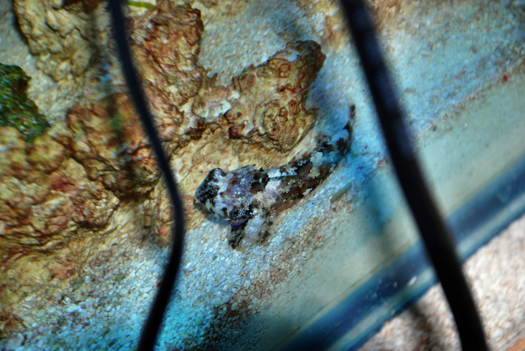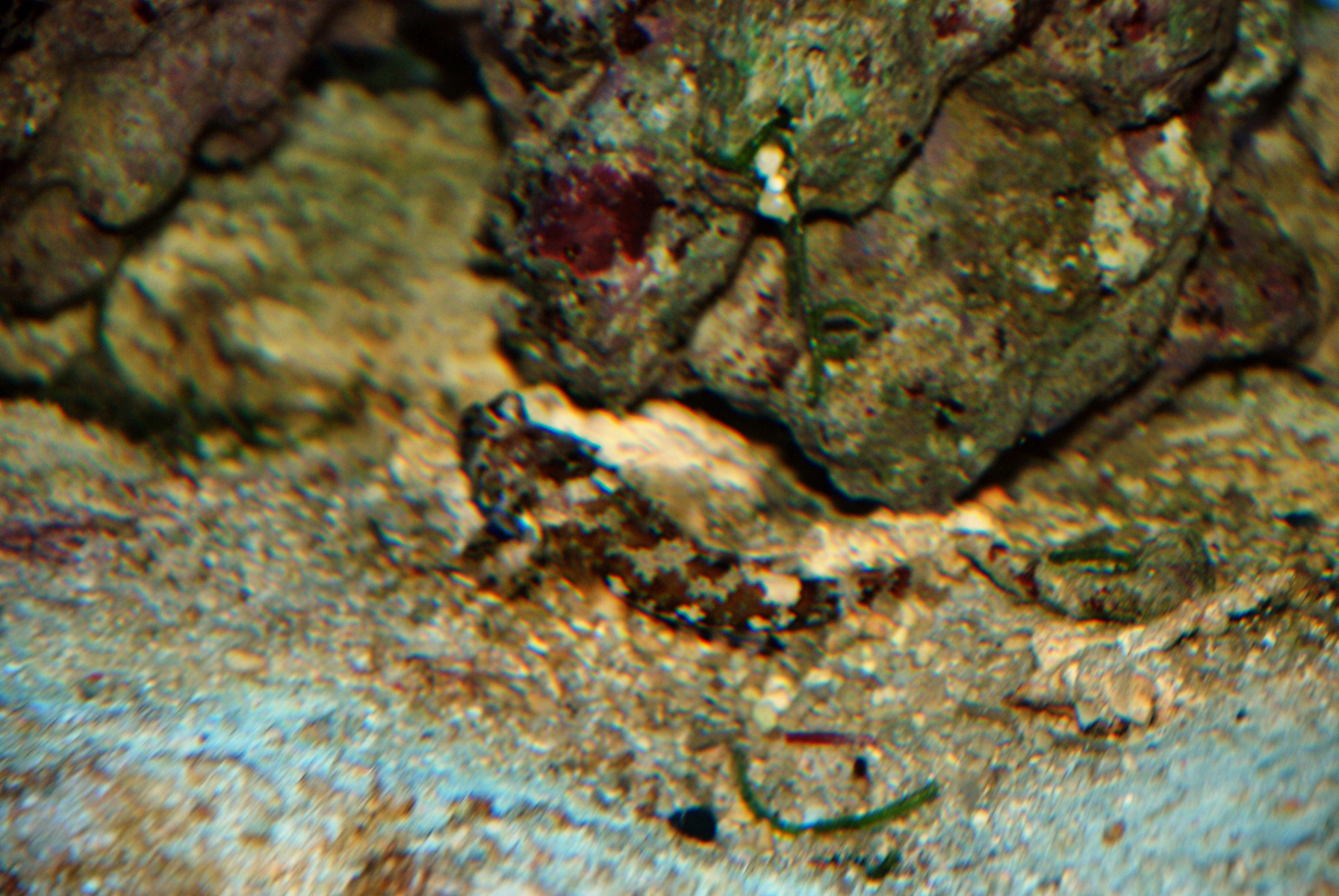 Auf dem anderen Bild die beiden Goldkopfgrundeln bei Ihrer Arbeit dem Baggern im Bodengrund.Im Hintergrund ist das Seespinnenmännchen zu sehen.