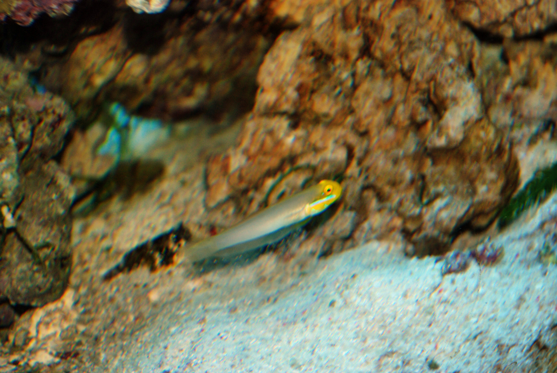 Die zwei mit den gelben Kopf sind Goldkopfgrundeln,die sich zum schlafen zwischen Steinspalten zwängen;bzw sich im Sand eingraben.