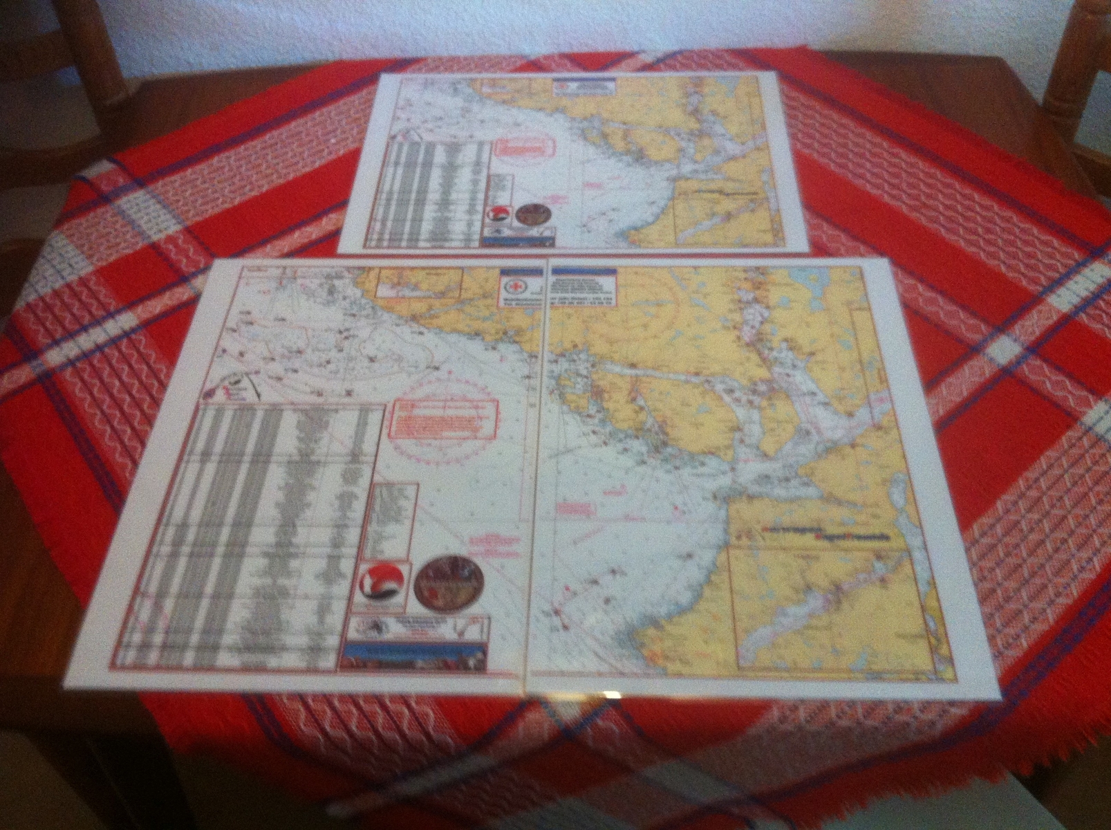So, Seekarten von den Angelfeunden auf A2 vergrössert, auf A3 geteilt, einmal gross Abelsnes-Hidra und einmal Ana Sira mit Siragrunnen,