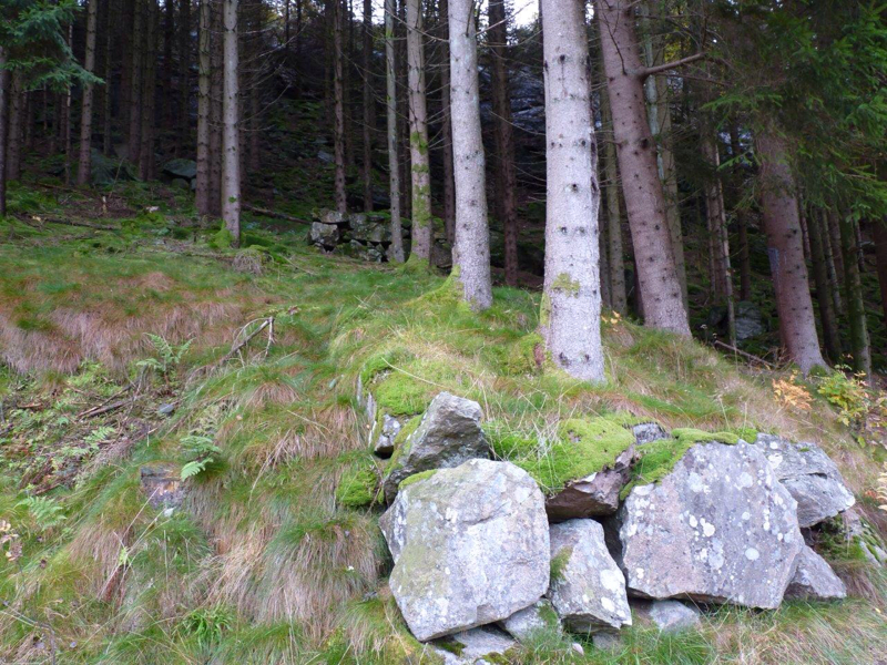 Bei einem Spaziergang um unseren See (Utjordsvatnet) haben wir an der Ostseite des Sees eine Steinformation am Hang des Berges im Wald gefunden!