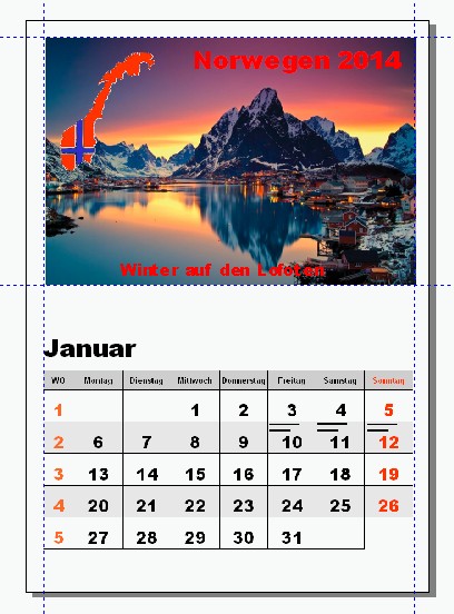 Die ersten beiden Seiten des Kalenders sind fertig.