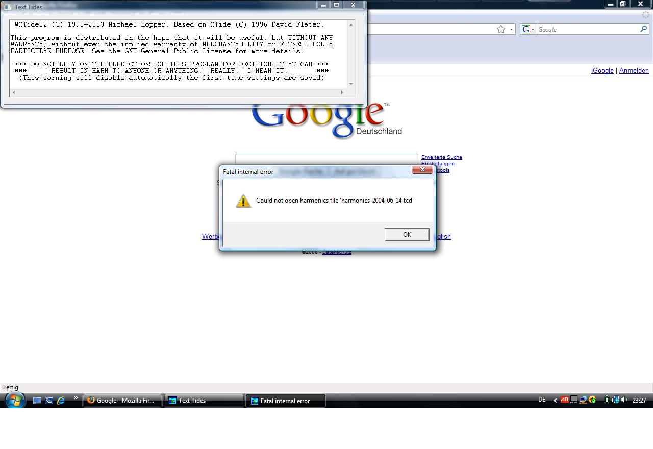 Ich habe WXTide32 auf meinem Rechner montiert. Beim Starten erschein folgende Fehlermeldung.