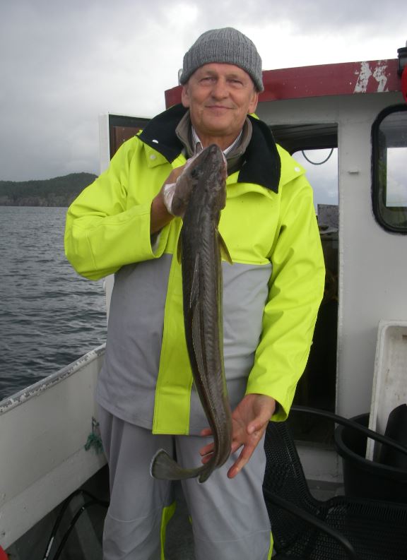 wir begannen also bei der ersten untiefe zwischen hille und huglo, setzten bei der zweiten fort (zu starke drift, wir kamen mit 500 g nicht auf die 150 m runter) und klapperten die drei plateaus direkt vor huglo ab, bis uns die haie verjagten. resultat für mich: drei lengs zwischen 75 und 80 cm. das bild vom ersten häng ich mal ran. bissel auflockerung. es sind nicht die riesen, aber für die küche prima. rotbarsch und knurrhahn ließ ich schwimmen. meine angelfreunde hatten pollack, köhler und dorsch. haie hatten wir leider alle, also wieder weg und auf unsere "nicht geheime geheimstelle", wo wir immer unseren ausklang machen. stefan kennt sie, es ist der eingang in unsere bucht, von seiner seite. dort hatte ich noch eine 70 er pollack und einen 65 er schellfisch. meine angelfreunde schellfisch, köhler, dorsch und wittling. daheim angekommen haben wir uns dann den fang unserer hausnachbarn angeschaut, ( der nicht filetierte teil als schnelles bild anbei) von dem sie uns schon unterwegs berichtet hatten. die jungs waren in einen seehechtschwarm geraten und hatten 24 seehechte zwischen 65 und 95 cm.