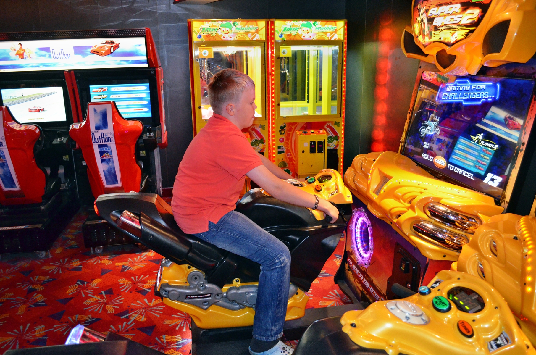 [FONT=&quot]Als Andrea von der Mama ins Bett gebracht wurde, machte ich mit Henning noch einen Abstecher zu den Videospielautomaten. Den Motorradsimulator fand Henning klasse. Auch wenn die Maschine auf der er da saß nicht meinem Stiel entsprach. Ausgerechnet eine Eierfeile. [/FONT]