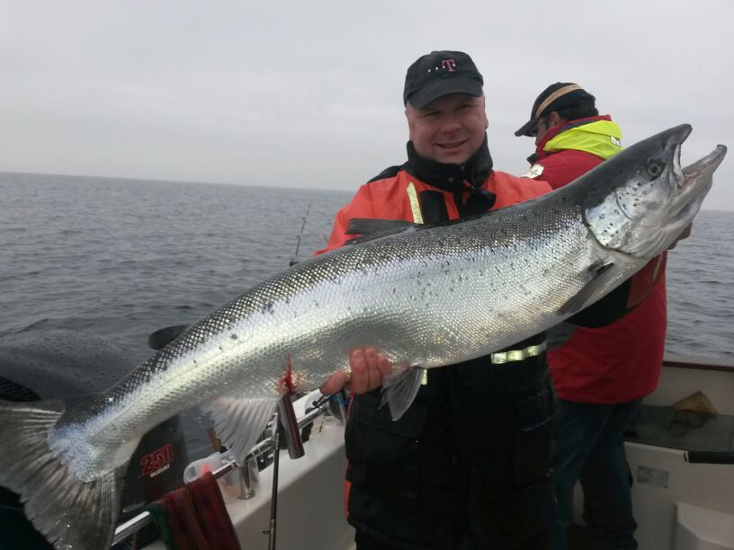 Gestern ließ nach längerer Zeit das Wetter wieder mal eine Ausfahrt zu. Von Glowe aus haben wir vor Kap Arkona vier schöne Lachse gefangen. Der größte war 1,10 m mit knapp 13 kg. Ein kleiner Küchendorsch war zum Abschluss dann auch noch dabei. So fängt das Angeljahr doch gut an.