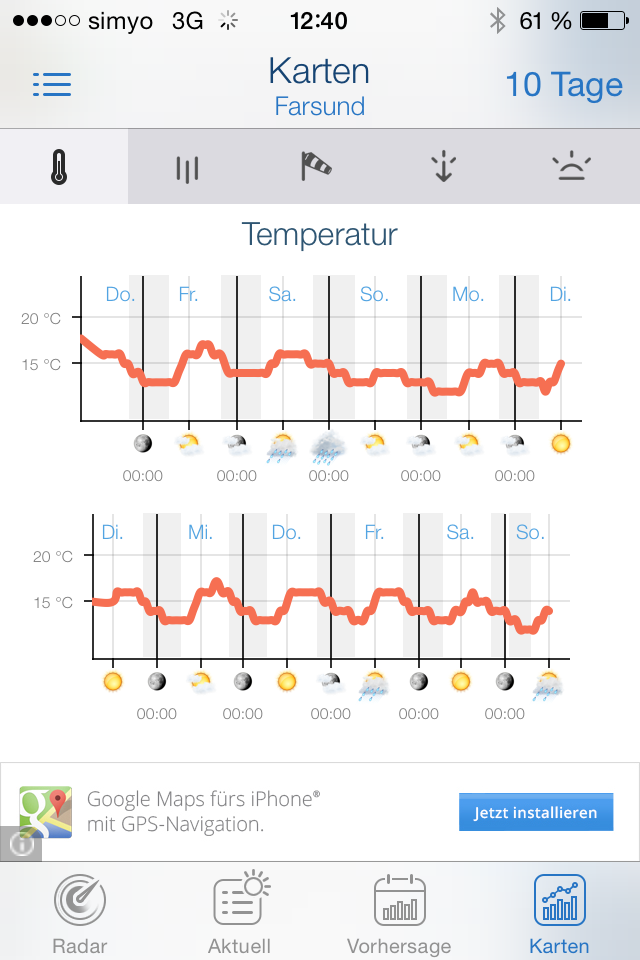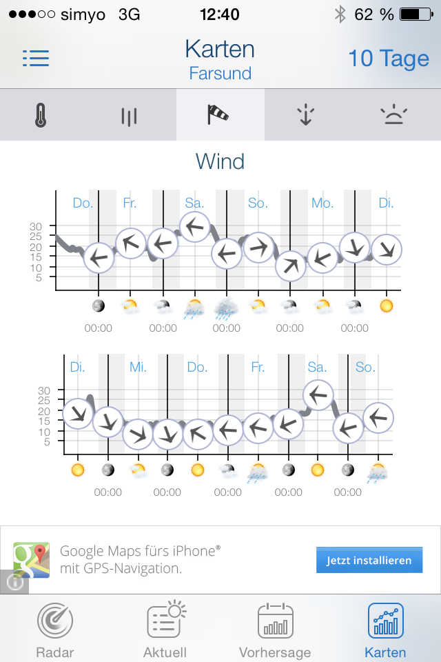 Heute war es total Windstill. Ein Traumtag mit 25 °C im Schatten. Das soll laut yr.no noch über 10 Tage so weiter gehen.
