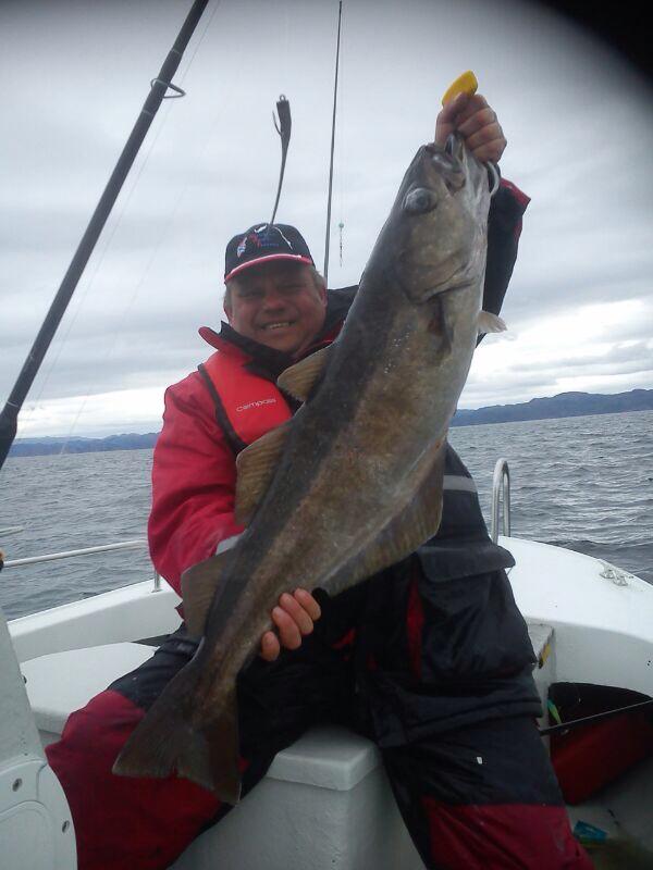Und noch ein Bild von Torbi und meinem Breiflabb Seeteufel, dem glitschigen Ding.Holger war mit Prinz Norge (unserem Ronny) und dem Loko-Fan Jörg zur selben Zeit im Survoll untergekommen.