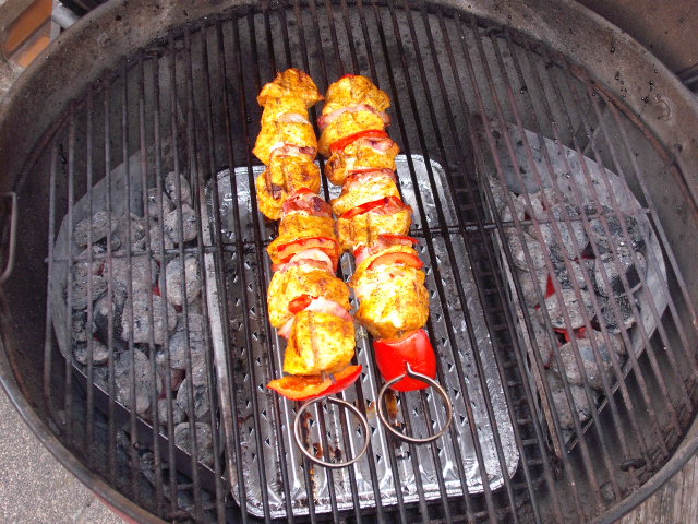 Hallo liebe Griller, hier das nächste Rezept von mir. Es handelt sich um einen Geflügelspiess, der mit Hähnchen- aber auch mit Putenbrust gemacht werden kann. Für zwei Spiesse werden ca. 400 gr. Geflügelfleisch benötigt. Dazu 1 Paprikaschote 1 Zwiebel und geräucherten Bauchspeck. Gewürzt habe ich mit einer fertigen Gewürzmischung für Geflügel aus einem Türkischen Laden und etwas Currypulver. Die Spiesse werden ca. 30-40 Minuten inderkt gegrillt.Als Beilage gab es rustikales Gemüse.