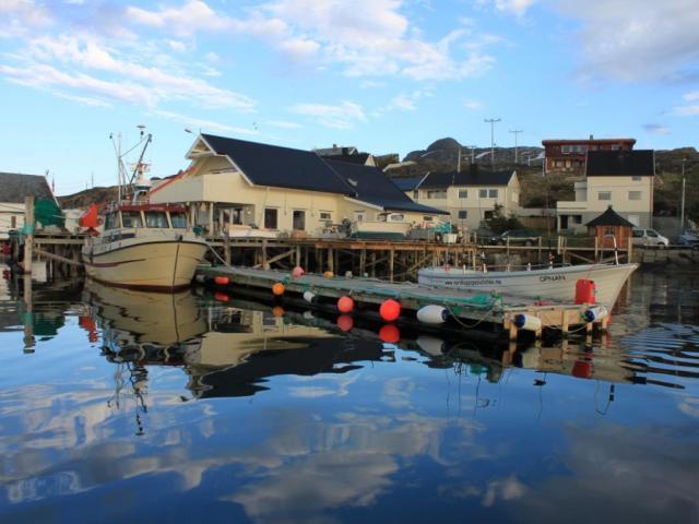 Vor dem Objekt am Kai befindet sich eine große Steganlage mit Liegeplätzen der örtl. Fischerboote und eine Schwimmbrücke, an der auch die Boote liegt. Zur Wasserseite unterhalb des Hauses befindet sich ein überdachter Fischreinigungsplatz. So können Sie z. B. ein am Steg gelegenes Grillhaus für das gesellige, abendliches Beisammensein nutzen oder von der Terrasse die Mitternachtssonne, und mit viel Glück das Polarlicht (Aurora borealis) beobachten. Von der Terrasse und der Uferanlage, oder vom Grillhäuschen besteht eine herrliche Aussicht auf die vorgelagerte arktische See und den nahen Vogelfelsen "Gjesværstappan".