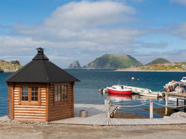 Vor dem Objekt am Kai befindet sich eine große Steganlage mit Liegeplätzen der örtl. Fischerboote und eine Schwimmbrücke, an der auch die Boote liegt. Zur Wasserseite unterhalb des Hauses befindet sich ein überdachter Fischreinigungsplatz. So können Sie z. B. ein am Steg gelegenes Grillhaus für das gesellige, abendliches Beisammensein nutzen oder von der Terrasse die Mitternachtssonne, und mit viel Glück das Polarlicht (Aurora borealis) beobachten. Von der Terrasse und der Uferanlage, oder vom Grillhäuschen besteht eine herrliche Aussicht auf die vorgelagerte arktische See und den nahen Vogelfelsen "Gjesværstappan".