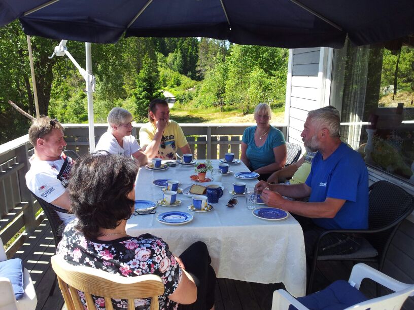 So Freunde endlich gibt es ein Erfolg zu vermelden. Aber erst mal Jürgen seine Frage beantworten. Wir haben auf deinen Lieblingsstegplatz auch mal bis 23.00 Uhr geangelt u. hatten auch eine kleine Mefo geblinkert die aber weiter wachsen darf. Kleine Dorsche,Seelachse u. bis vor kurzen auch Makrele konnte man hier angeln. Die Markrele ist jetzt aber wieder raus. So u. nun zu Heute. Wir wurden heute von Eckhard in sein Berghaus eingeladen bei Kaffee u. Kuchen. Ein sehr schönes Fleckchen Erde dort oben. Hier oben streift auch oft der Elch herrum die frischen Hufabrücke waren noch deutlich sichtbar.