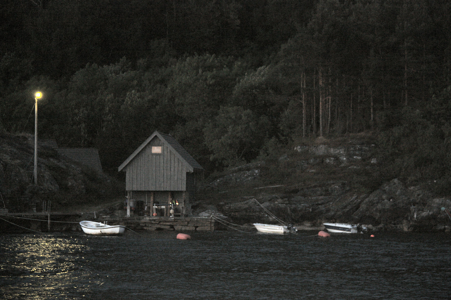 zum beispiel so : Hafen der hytta bei " nacht " - mit dem betonen auf die Restfarben im grau