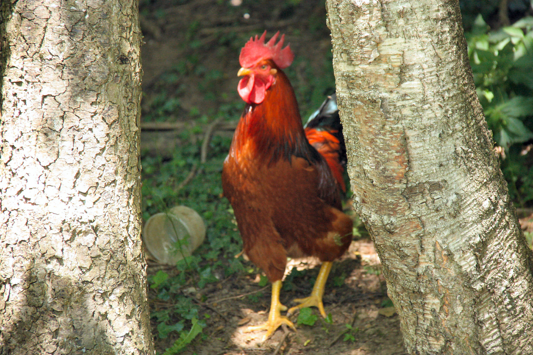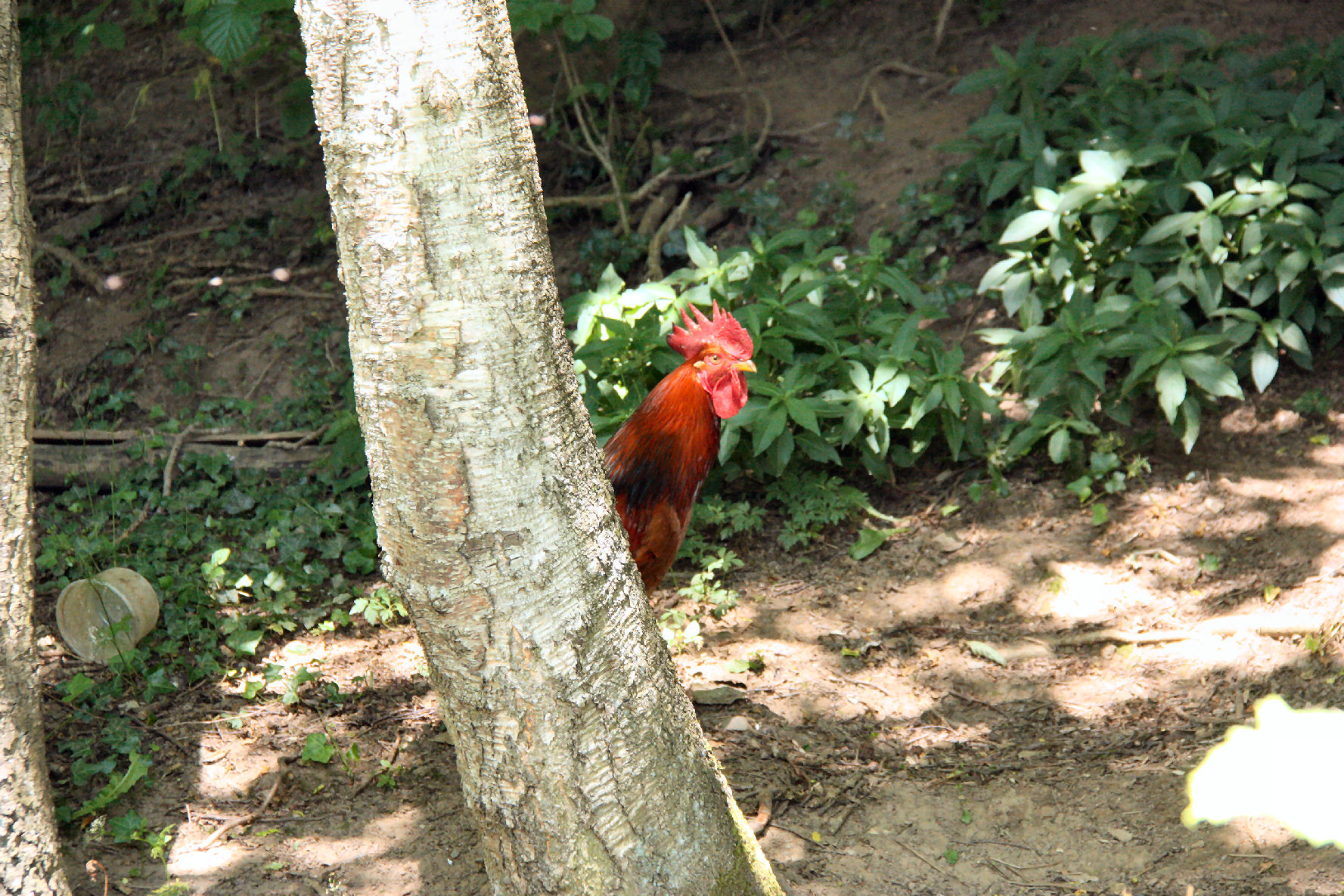 waehrend Michael und juergen im hafen angelten, zogen margareta und ich mit der kamera um die insel. bei einem halt fielen uns aus einem waldstueck an der strasse ( keine bebauung in der unmittelbaren naehe ) das geschrei von federvieh auf...allerdings klang das mal gar nicht nach dem hausgefluegel. unmitttelbar neben der strasse bekriegten sich offenbar zwei haehne auf kuerzeste distanz im singewetstreit.