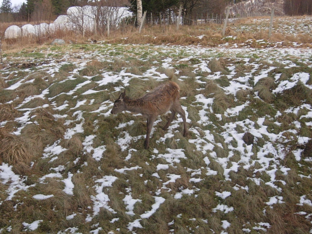 war eben Holz holen, und was schaut mich da im Schuppen mit grossen Augen an ... ein Hirschkalb. Wollte wohl auch Holz holen :p