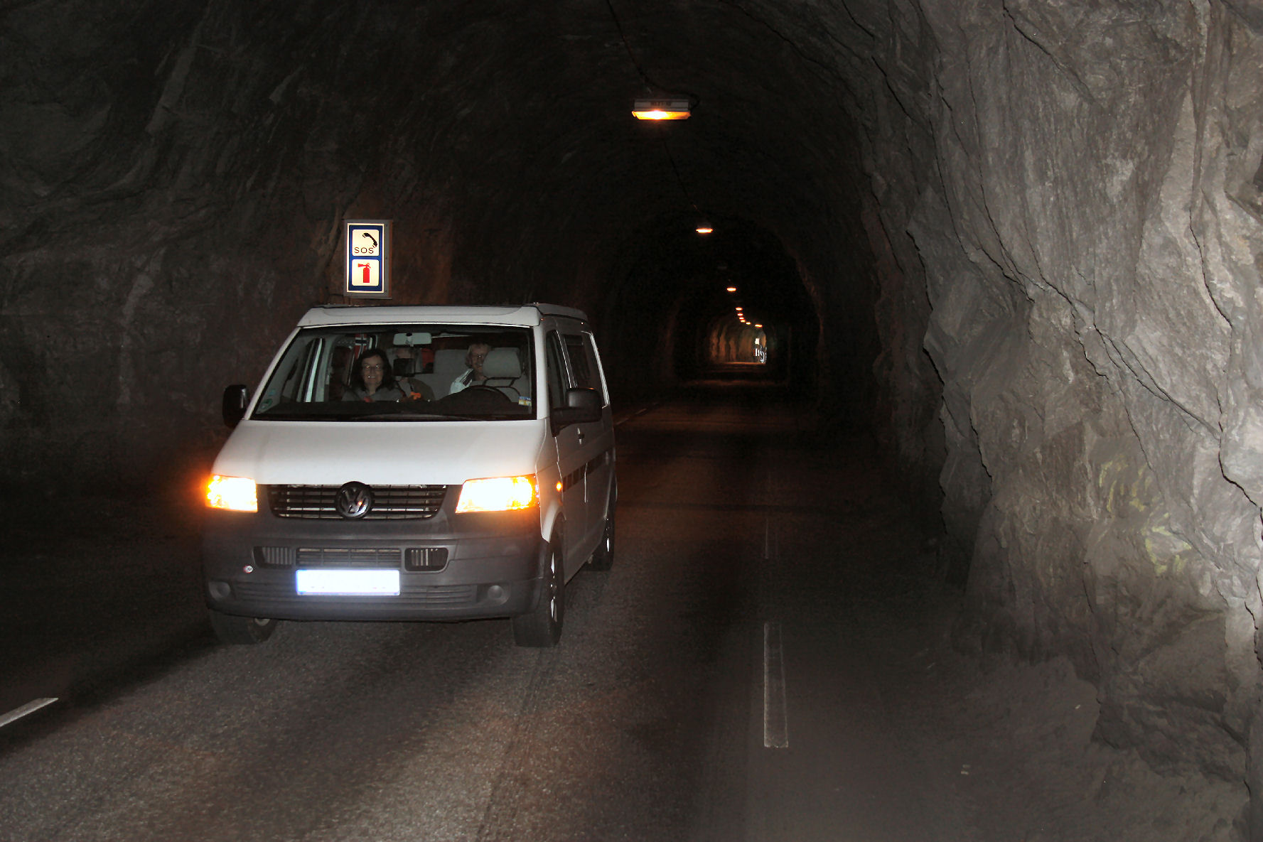 kurz nach dem tunnel, in der naehe von sunndal folgen fuer mich ja immer zwei besondere gags am bzw. auf dem weg - erst der wasserfall, dessen name ich mir nie merken kann ( er hat aber glaube ich einen ) und dieser klasse enge, einspurige tunnel mit der ampelregelung und dem stockfinster-effekt.