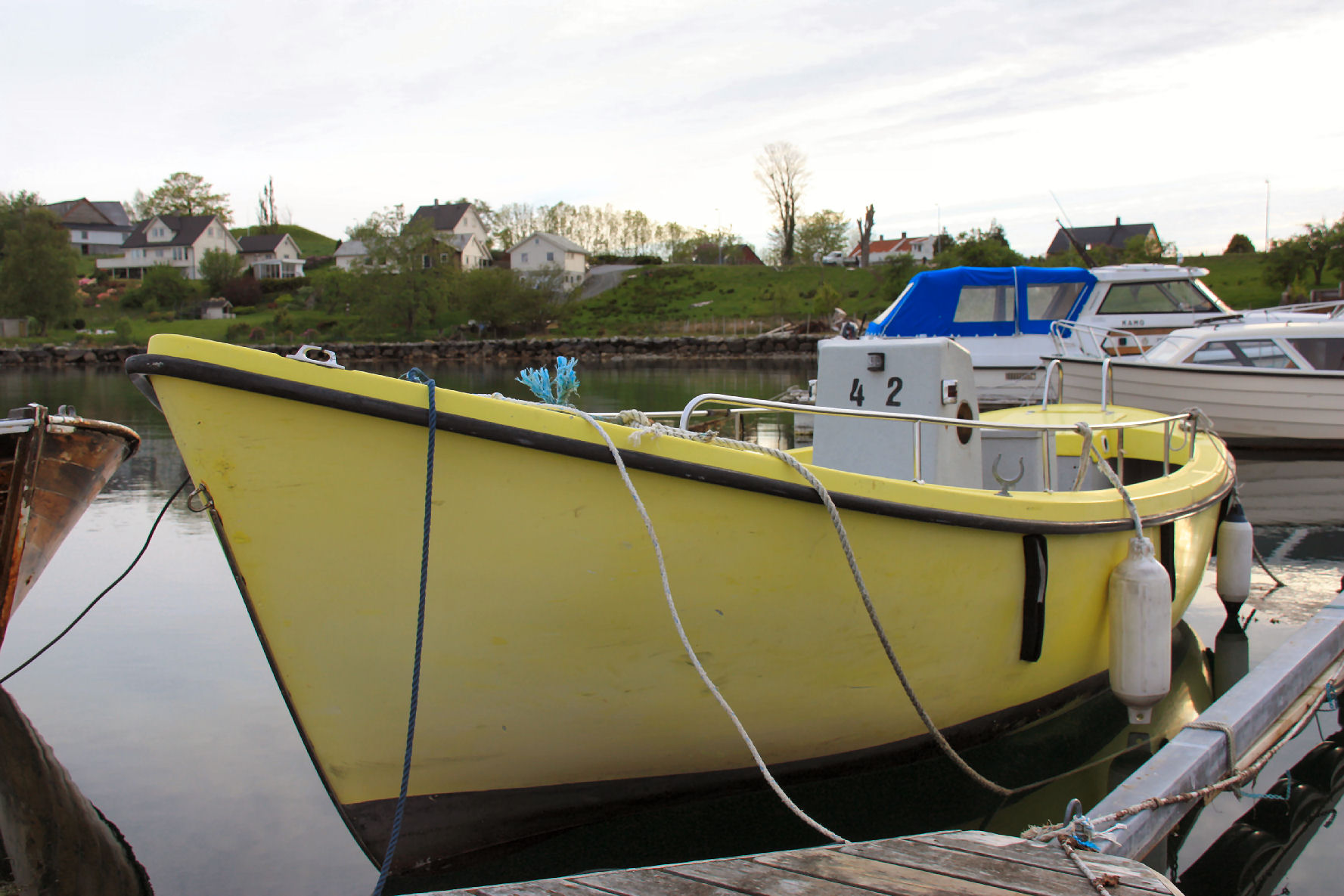 liegeplatz des yellow , einfach kurz nach vorne ranziehen, guter zustieg ueber den hohen bug auf die sitzflaeche im bug innen, das ist okay, dass ist fuer damen und herren um die fuenfzig gut machbar :) - natuerlich bitte zu zweit...wie bei jedem boot eigentlich selbstredend.