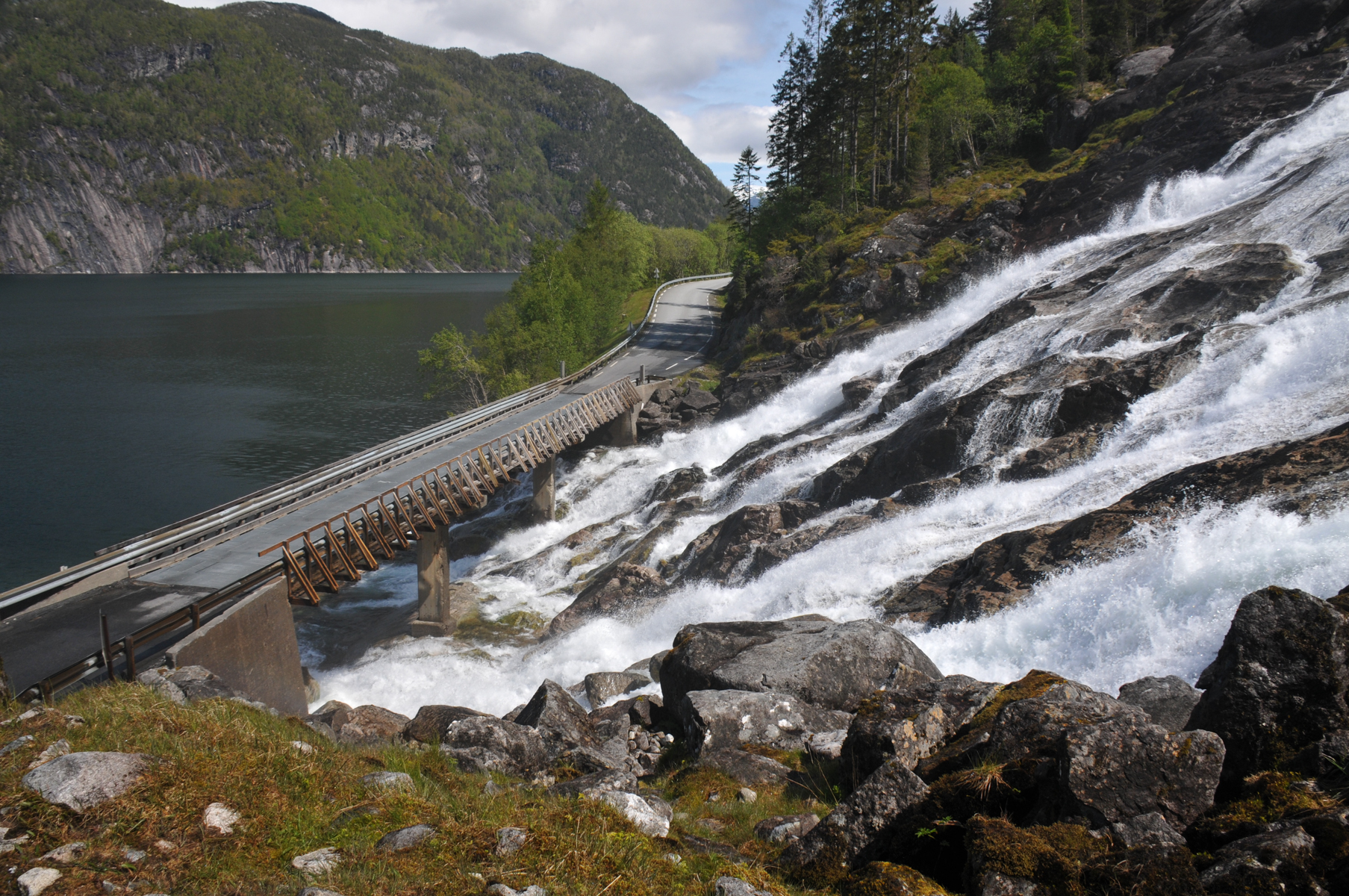 von der 134 sind wir dann kurz nach røldal abgebogen auf die rv 13 in richtung odda, womit uns der weg unweigerlich und voll beabsichtigt zum låtefossen fuehrte.