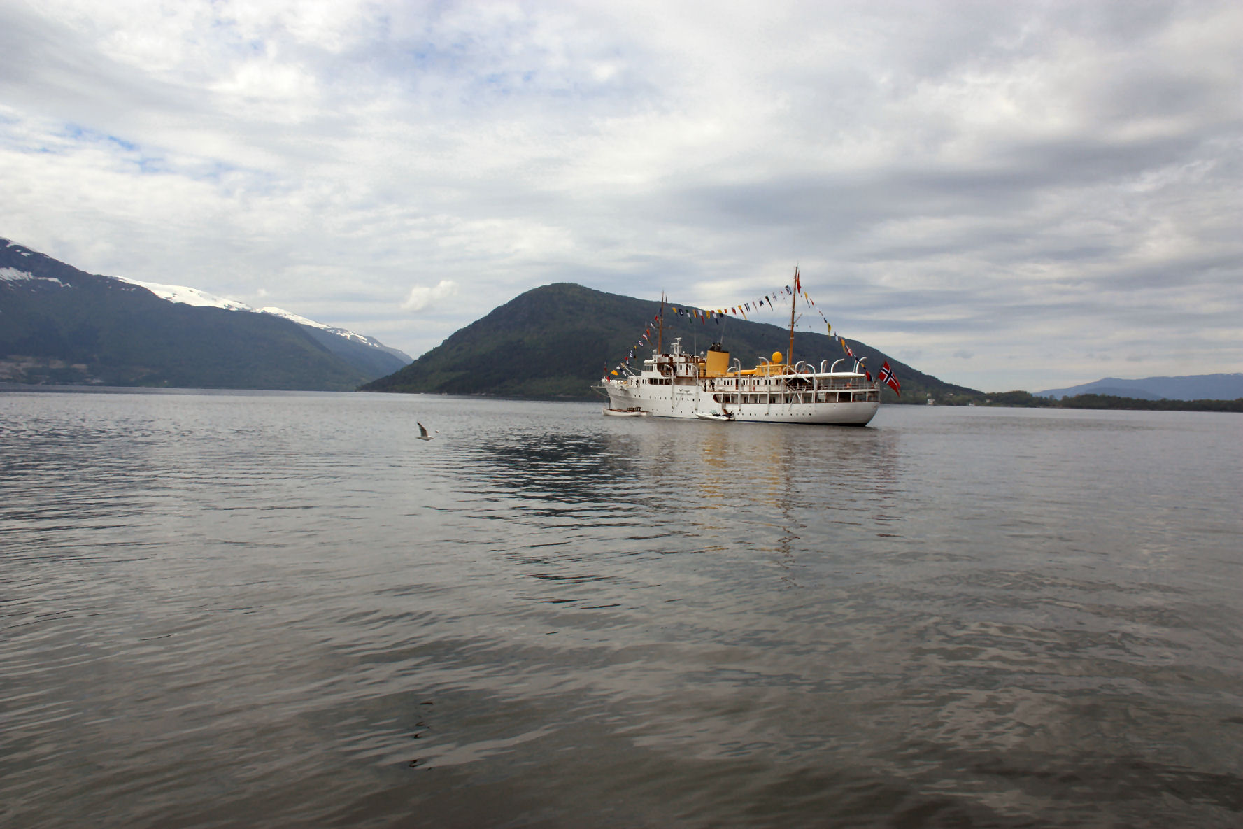 jedensfalls so kurz hinter hoyland (kann man ja schoen auf rosendal und den fjord davor schauen) fragt ploetzlich juergen von hinten links : " was denn das fuer ein alter pott da auf dem fjord?"
