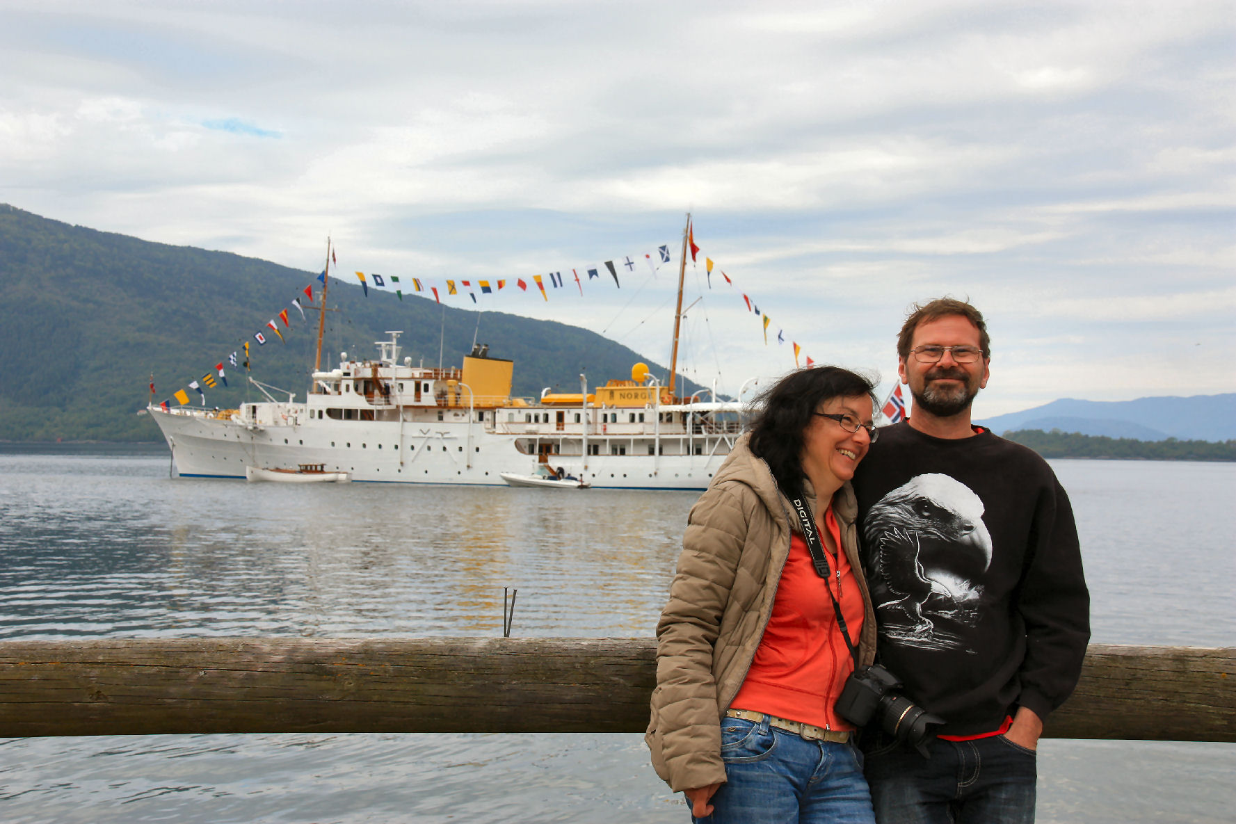 mag nicht fuer jedermann nachvollziehbar sein und schon gar nicht erklaerbar aber fuer mich ist das norwegische koenigshaus die personelle verkoeperung dessen, was ich mit norwegen verbinde. war also schon etwas sehr besonderes in einer gegend, die ich so sehr mag, weil auch irgendwie "richtig norwegisch", noch dieses schiff mit geheisstem stander zu sehen.