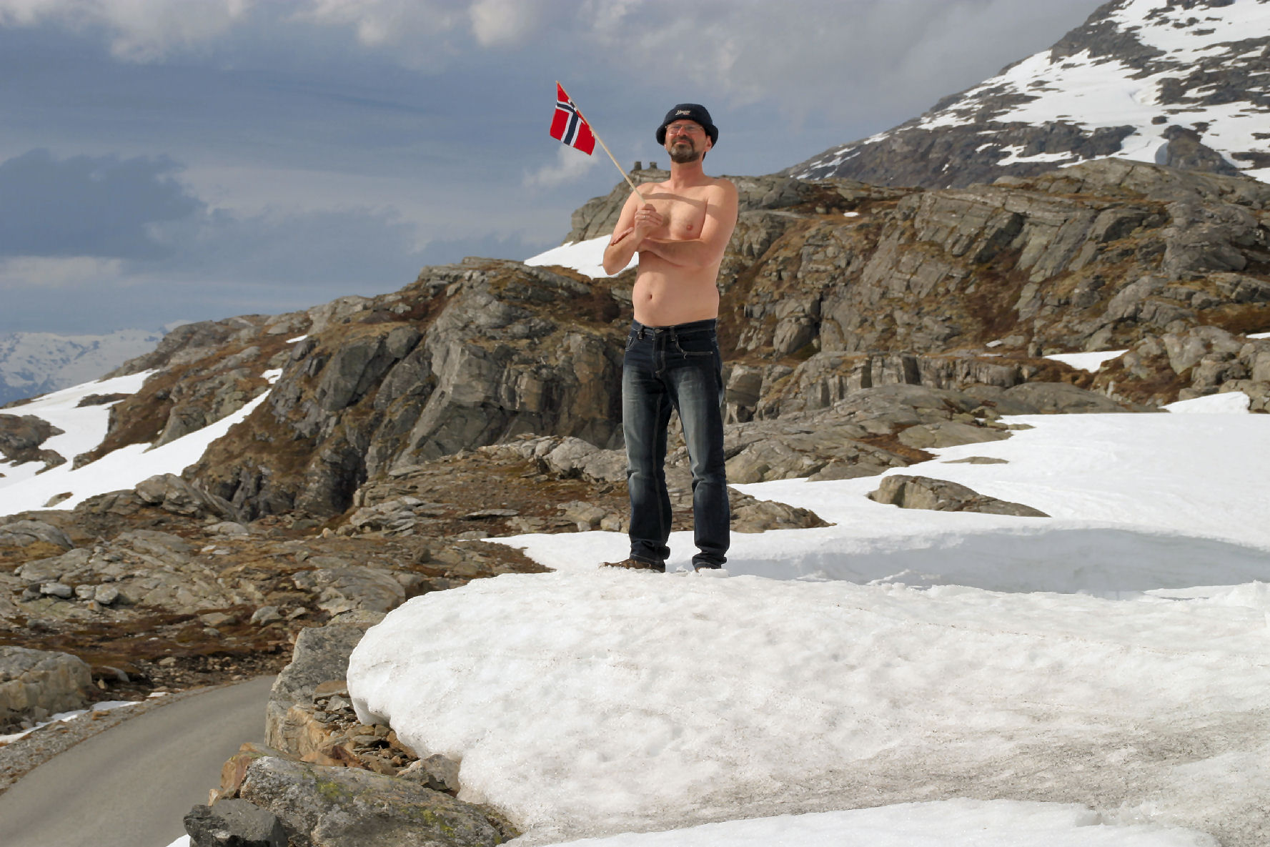 aber da das wetter noch ein bisschen besser wurde, planten wir halt um - und waren nun dabei, weiter bis Jondal zu fahren und da mal " uf den huegel " zu schauen....juergen freute sich sehr .... ;)