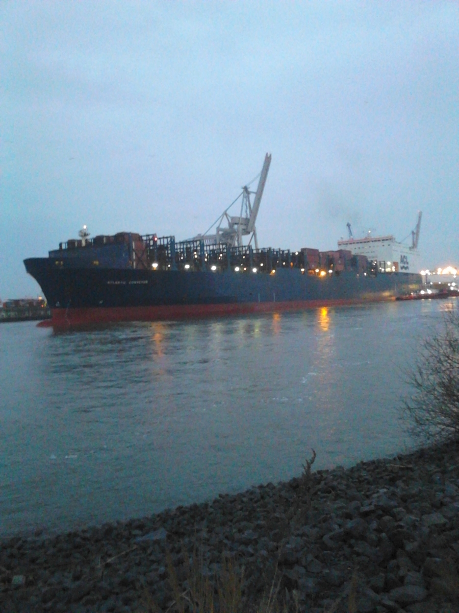 Am Kai gegenüber wurde ein Containerschiff "eingeparkt"